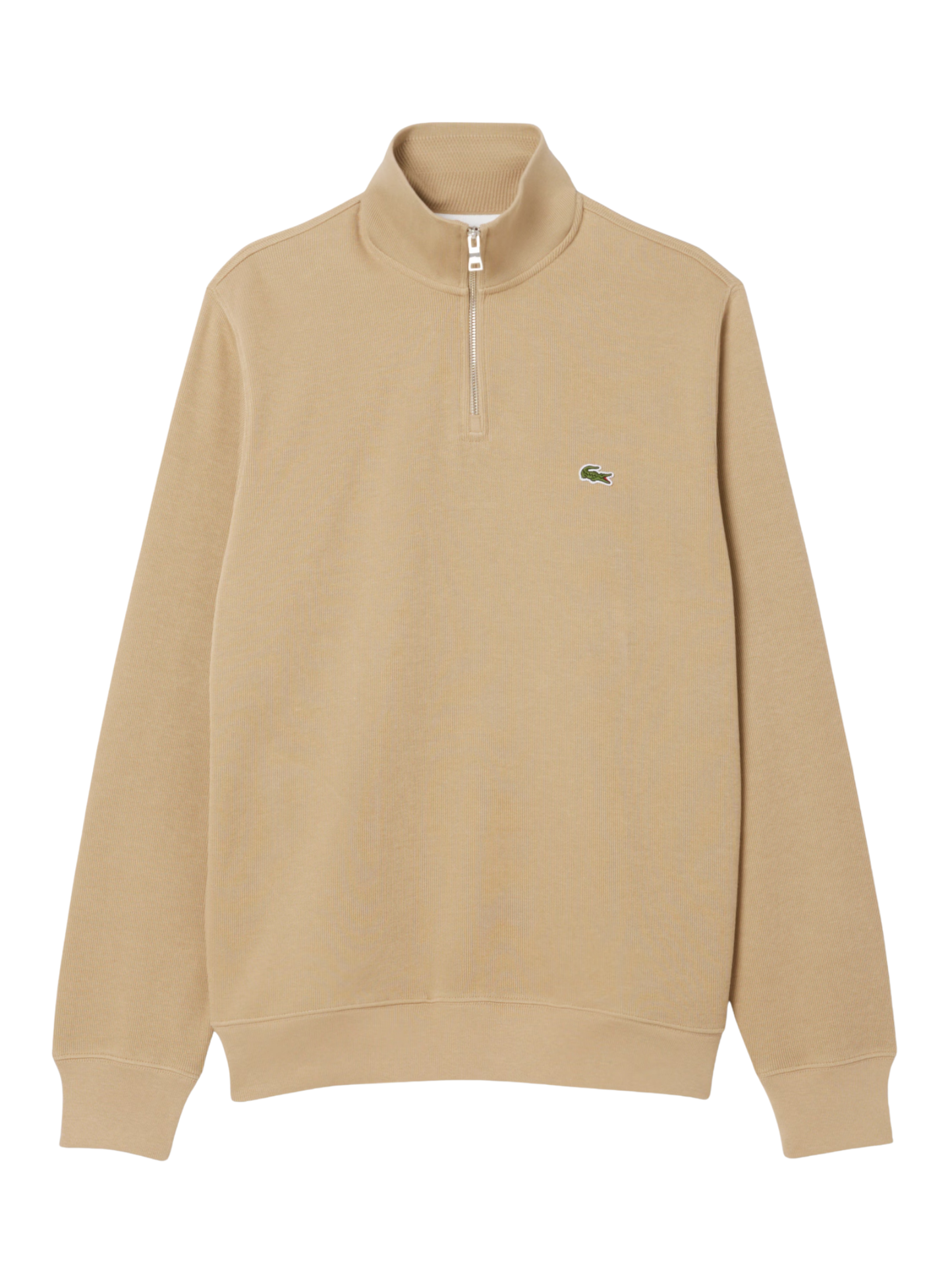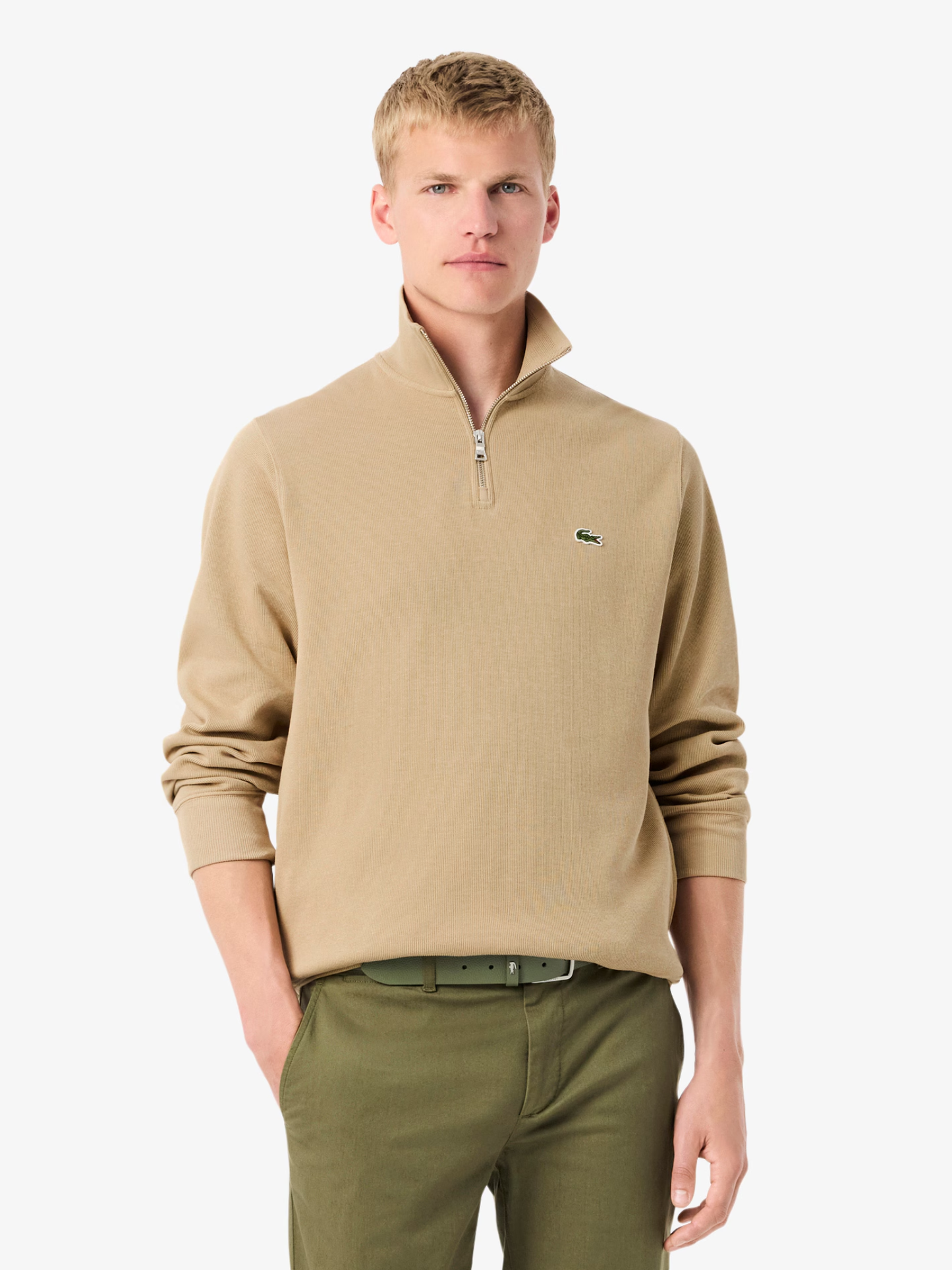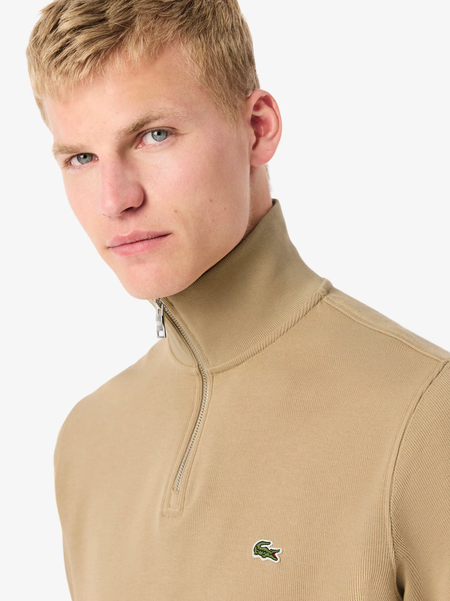 LACOSTE Zip-Up High Neck Interlock Sweatshirt Beige