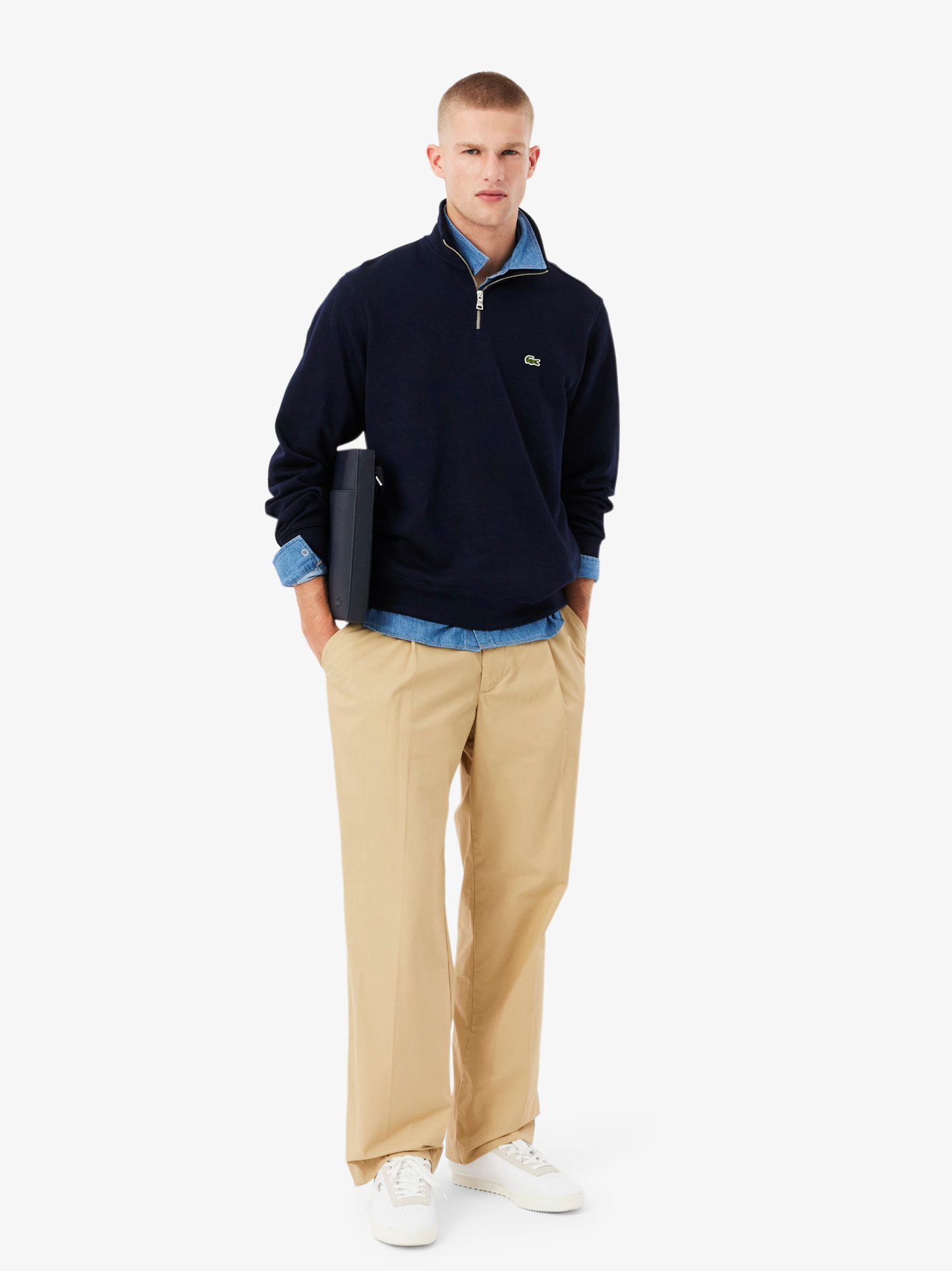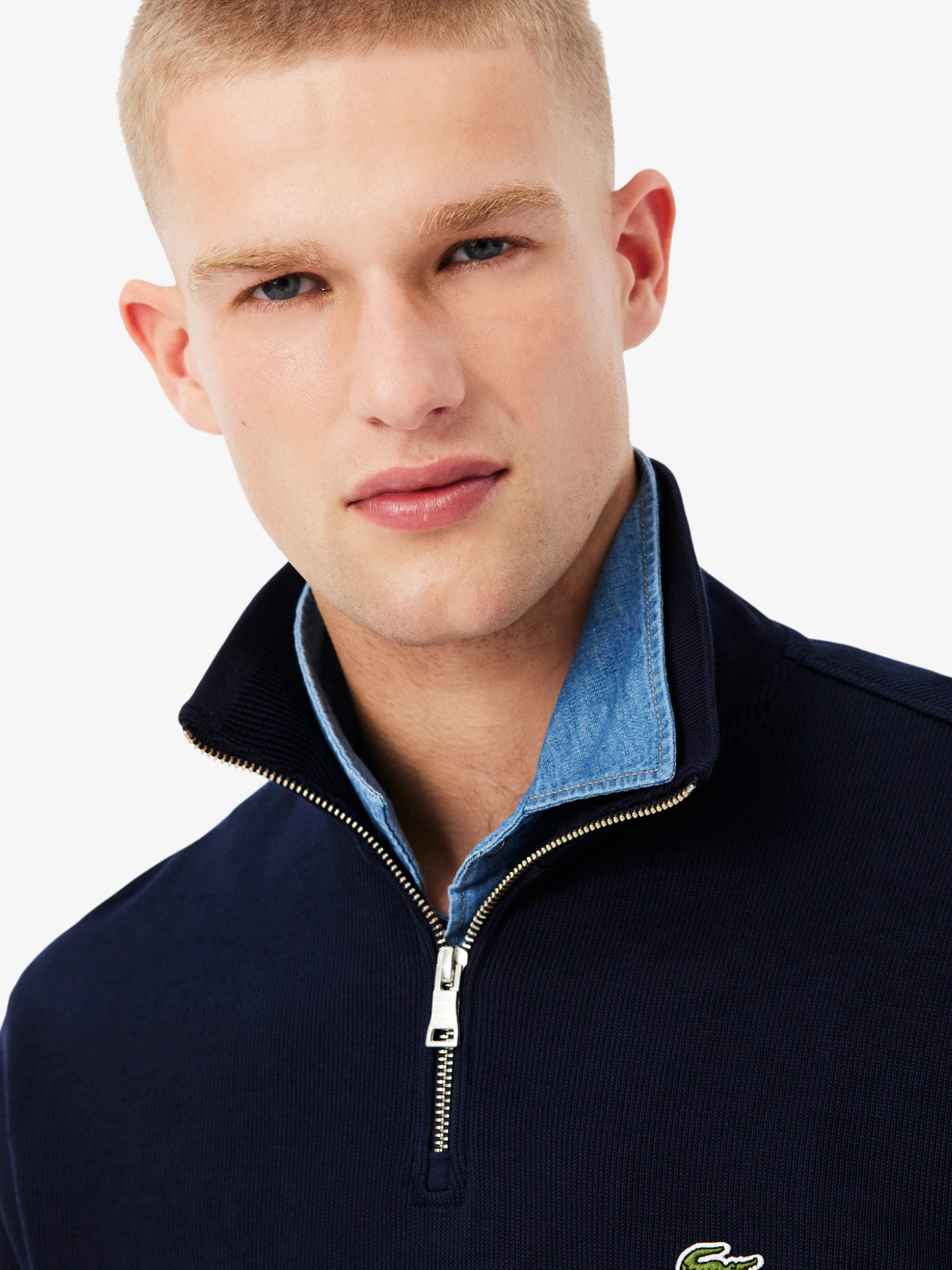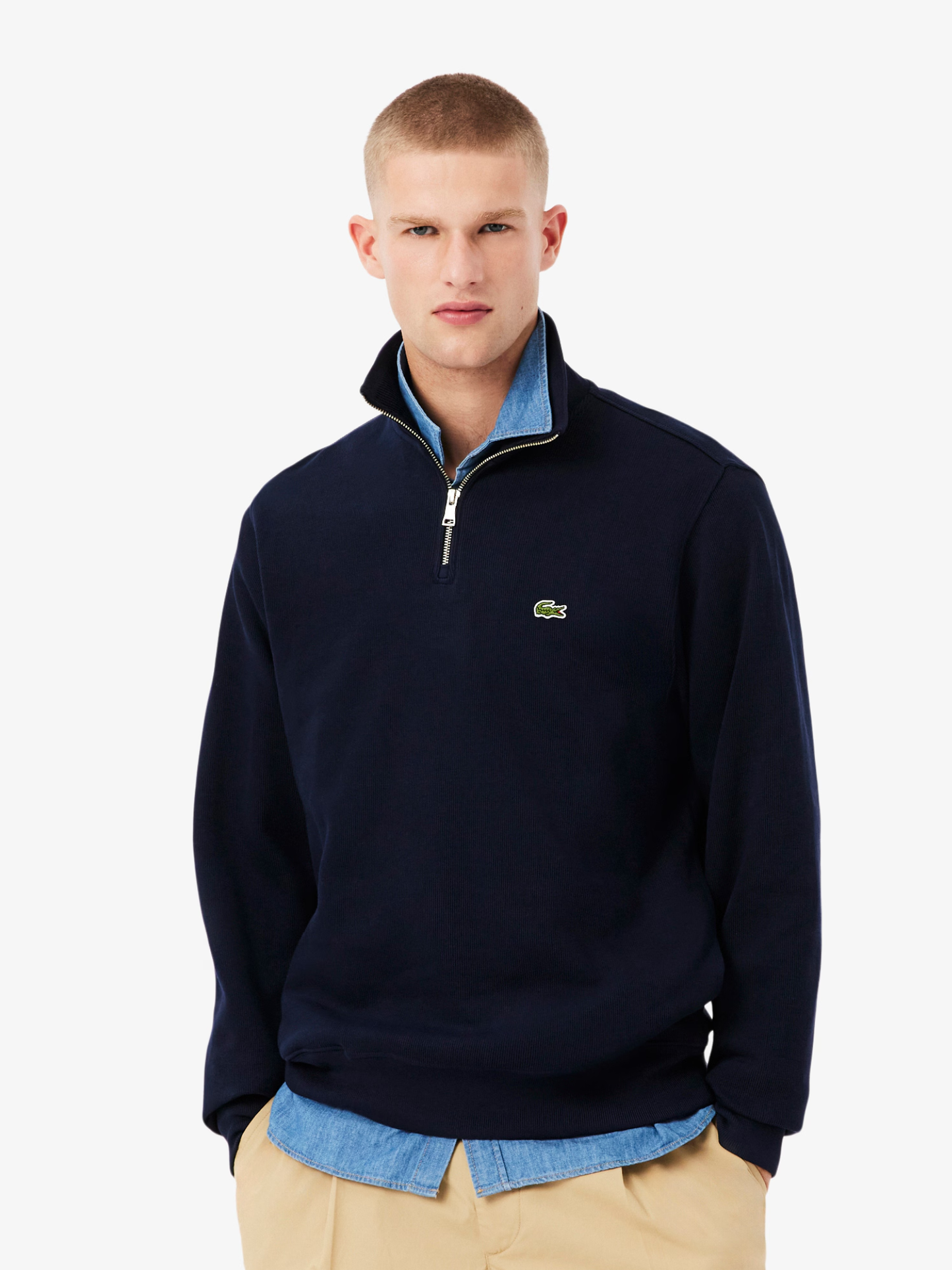 LACOSTE Zip-Up High Neck Interlock Sweatshirt Midnight Blue