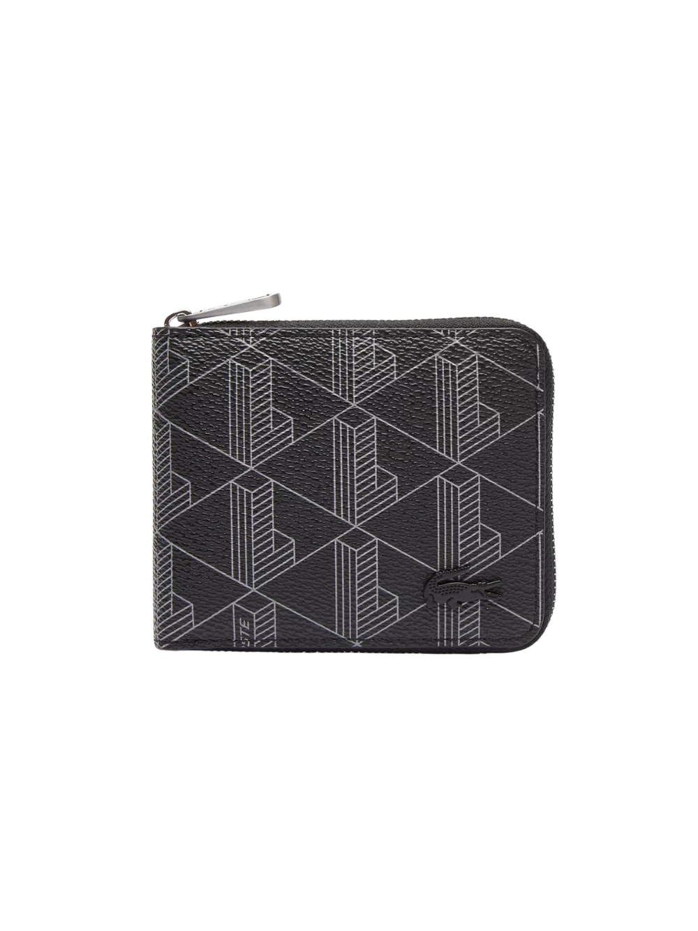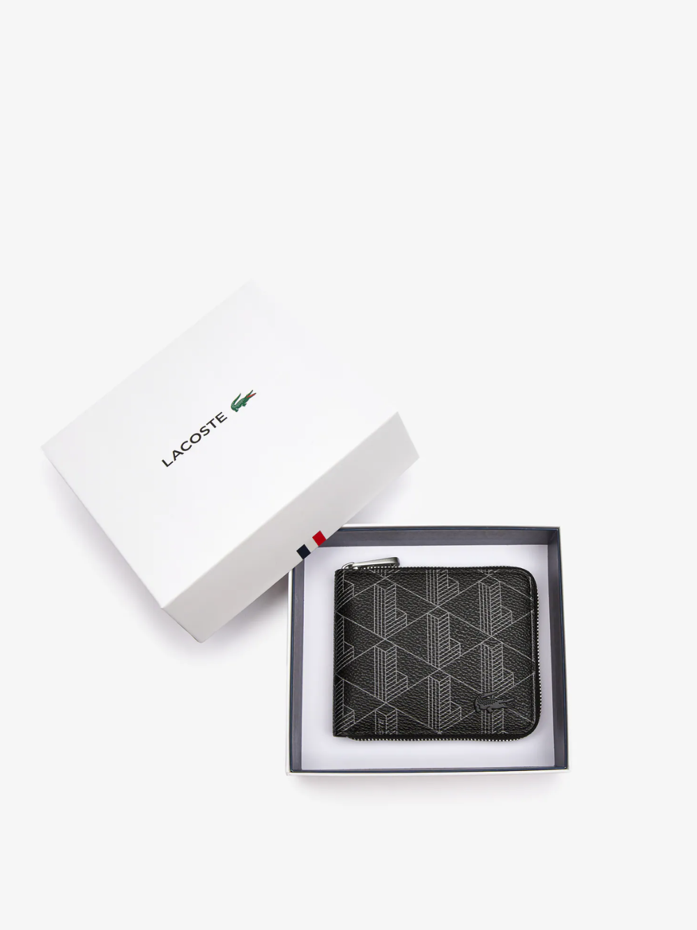 LACOSTE Zipped Monogram Billfold Black/Grey