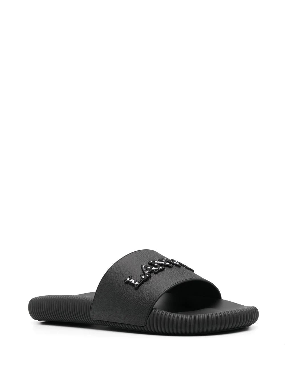 شبشب سباحة مطرز بشعار LANVIN باللونين الأسود والأبيض
