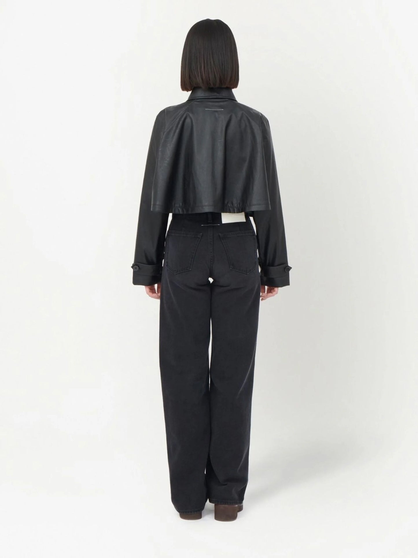 جاكيت MAISON MARGIELA MM6 نسائي قصير من الجلد الصناعي باللون الأسود