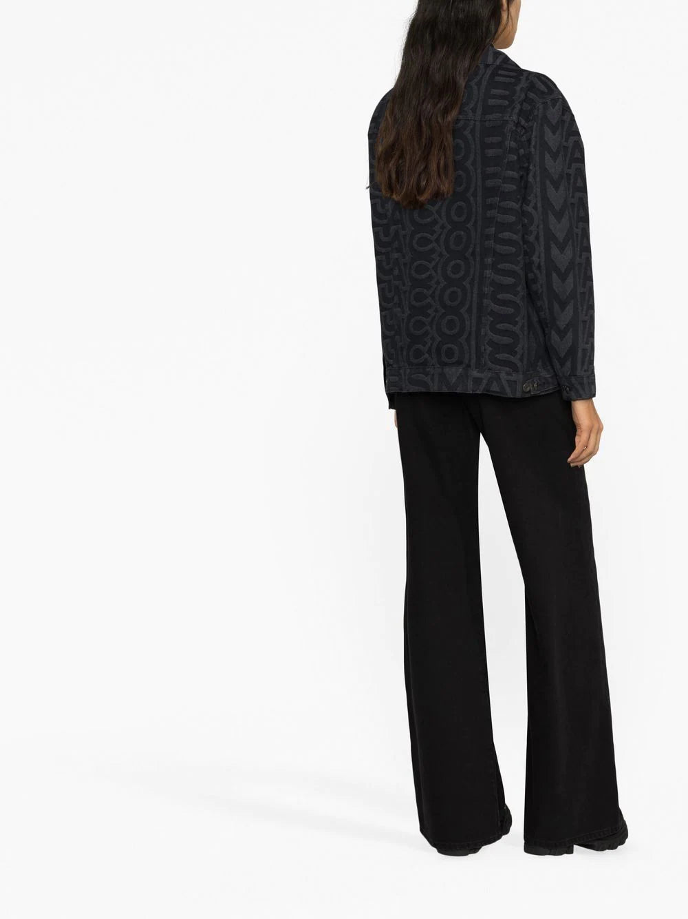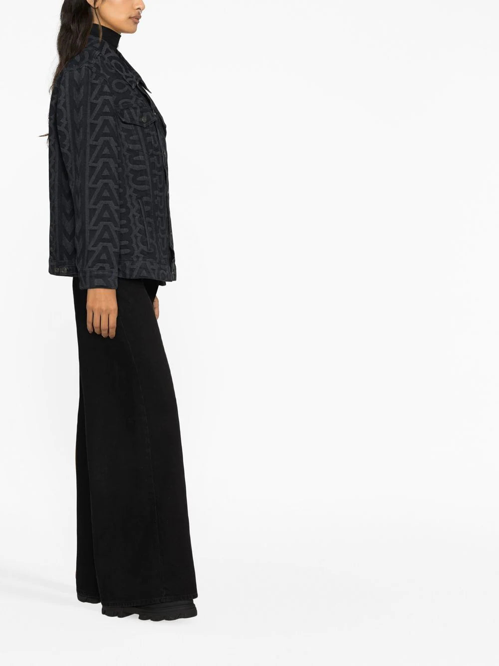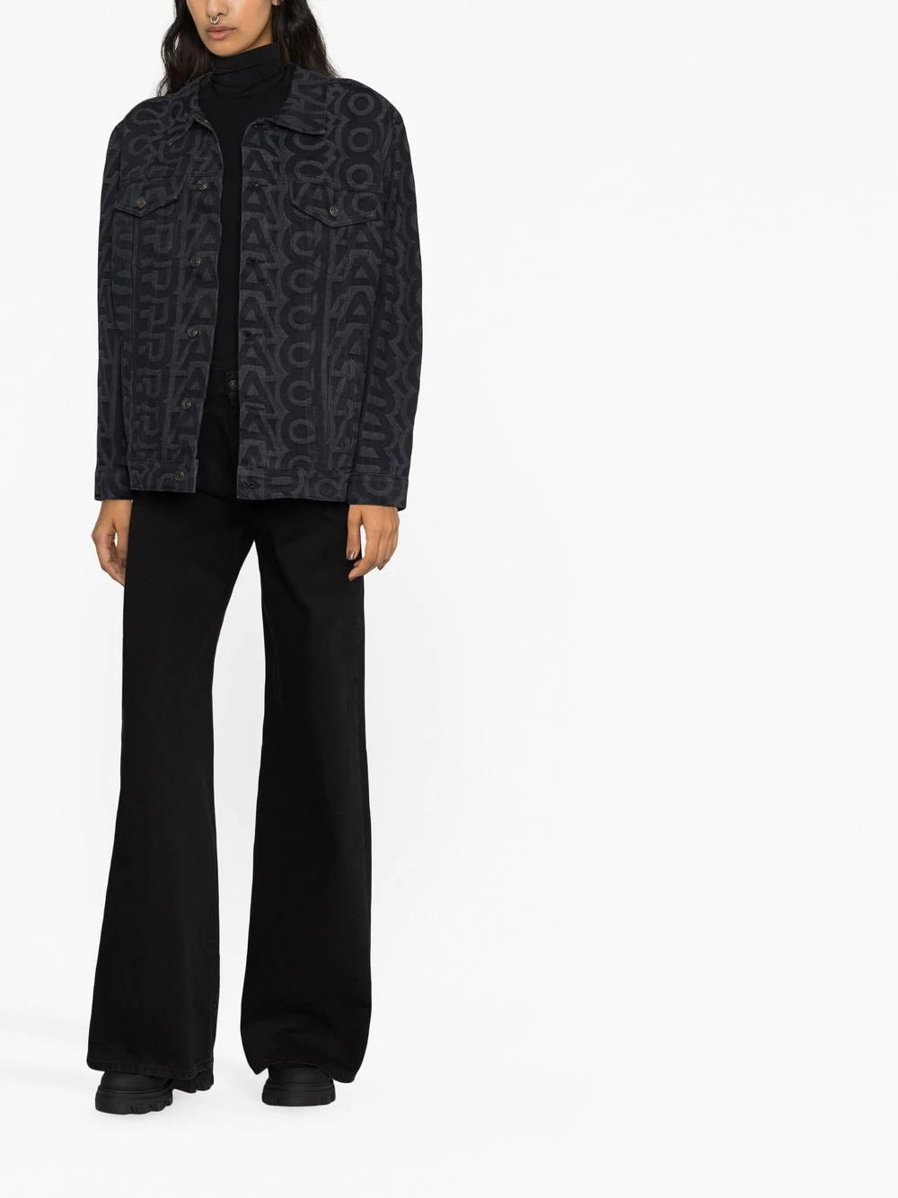 يقدم مارك جاكوبس لمسةً جريئةً في عالم العلامات التجارية مع سترة الدنيم هذه. يغطي شعار العلامة التجارية المكرر والكثيف القطعة، موحدًا ومختصرًا بفضل تصميمها الرمادي الداكن على خلفية سوداء.