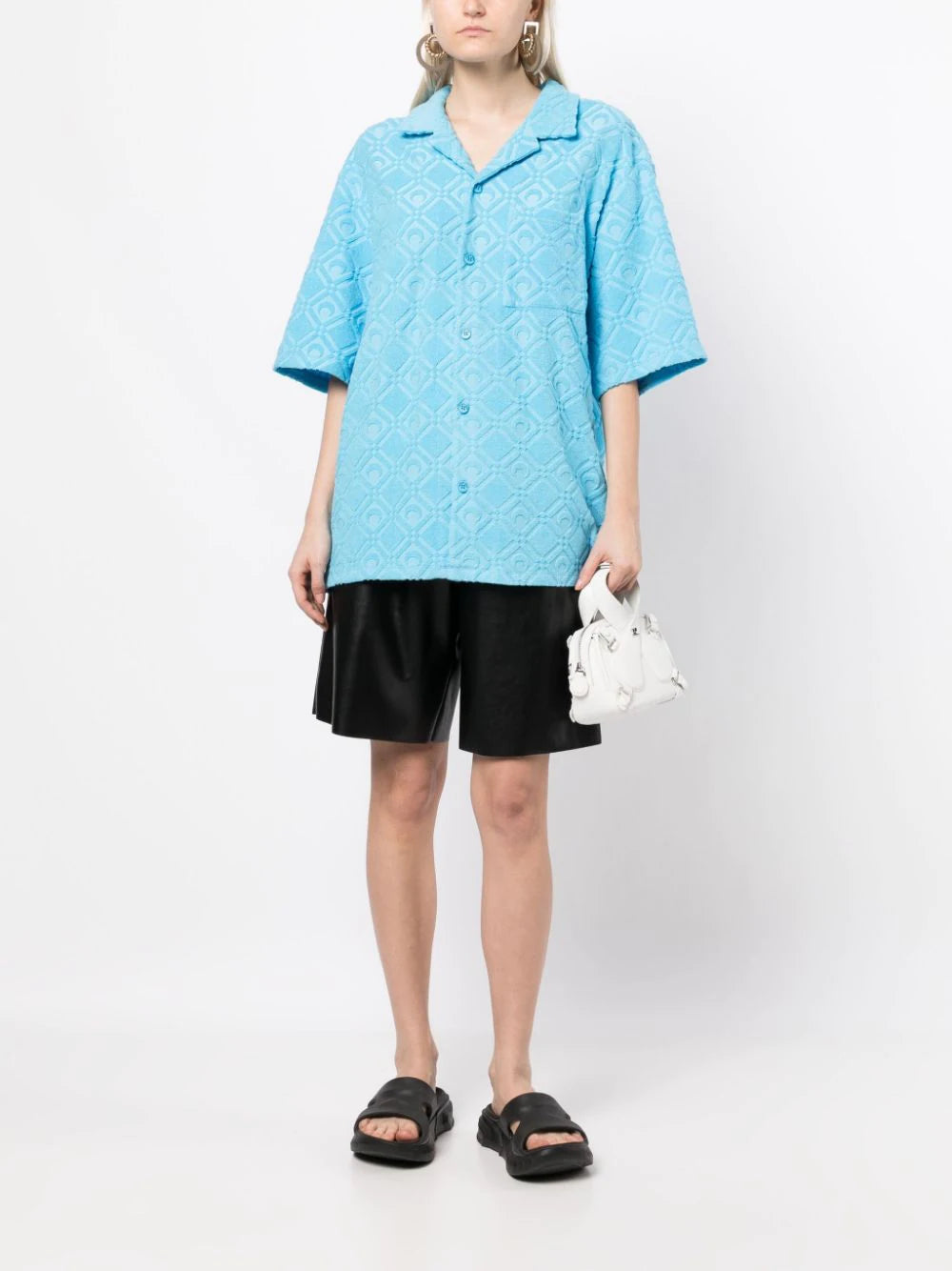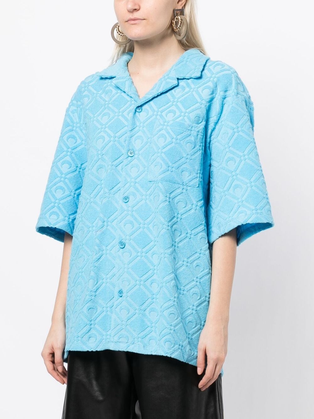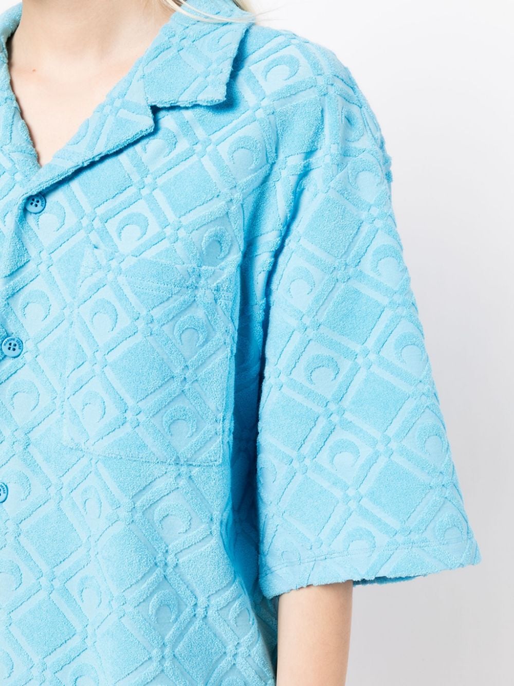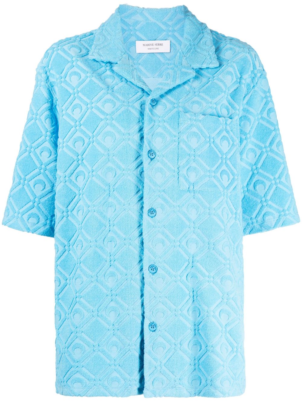 قميص بولينج أزرق من MARINE SERRE مصنوع من قماش جاكار إسفنجي مُجدد