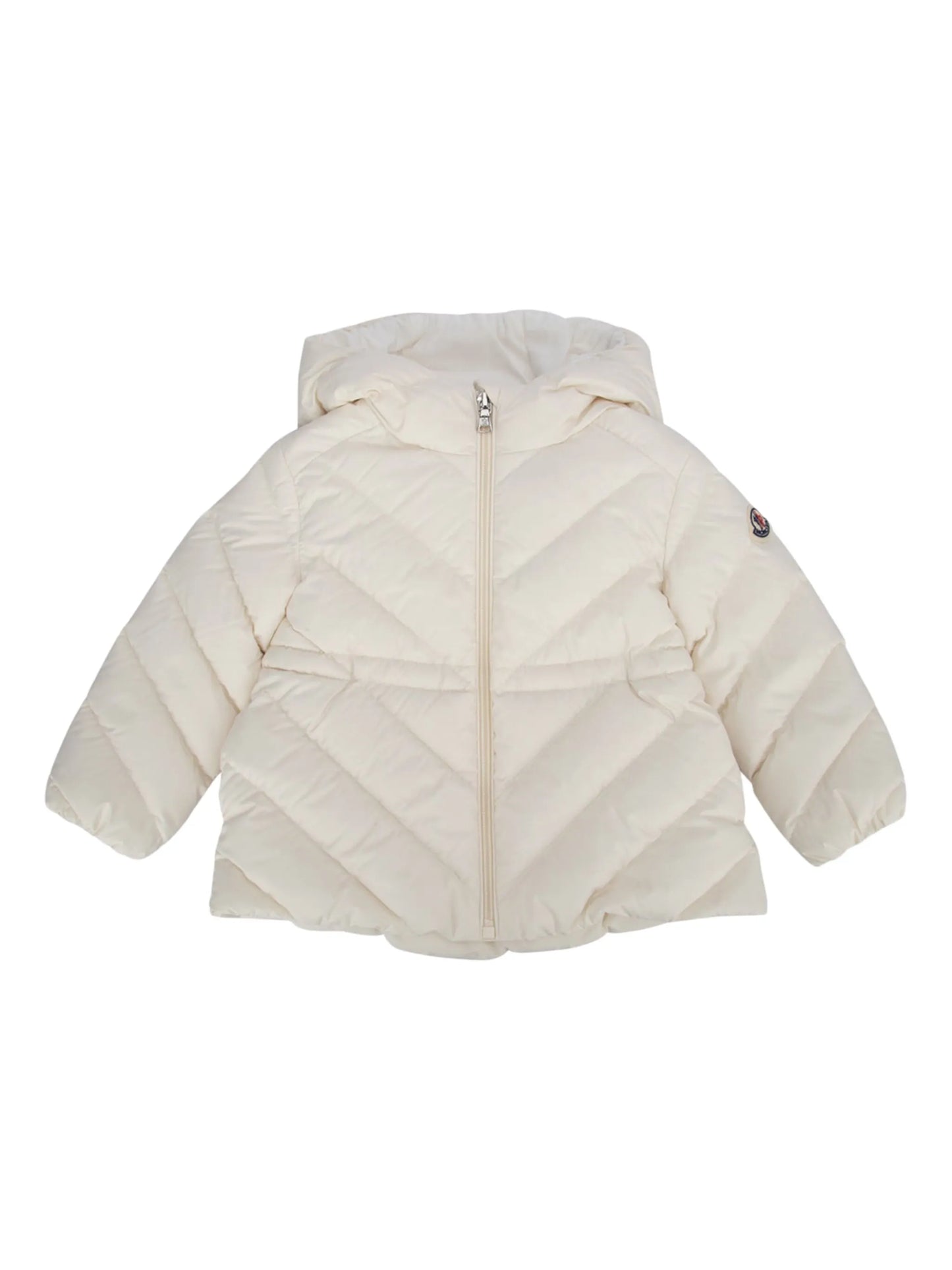 جاكيت مونكلير بيبي للبنات بشعار سانا المبطن باللون الأبيض