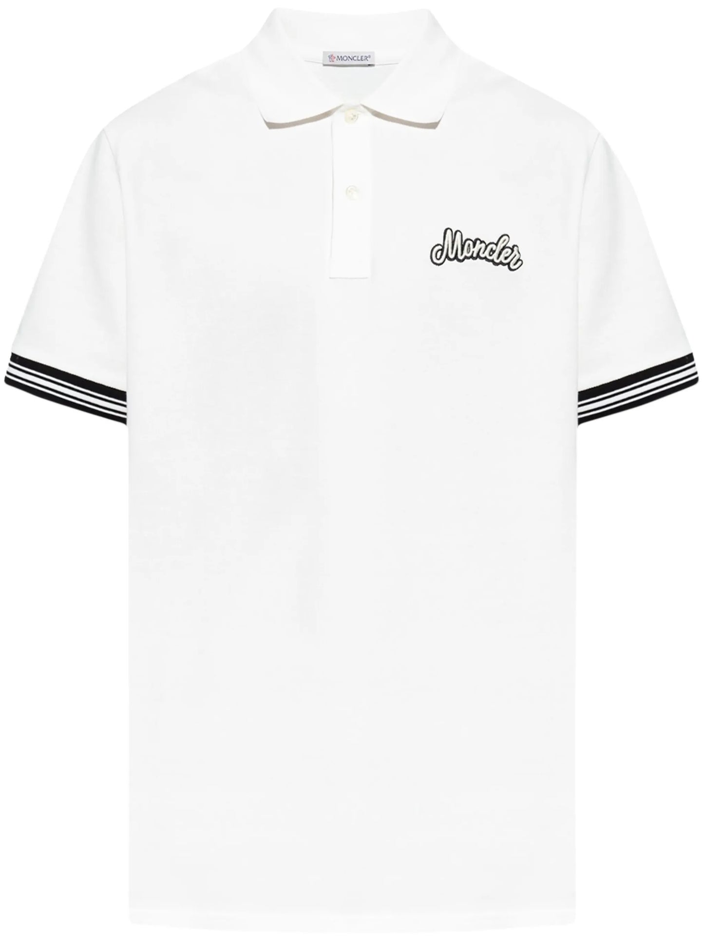 قميص بولو أبيض بأكمام قصيرة مطرز بشعار مونكلير