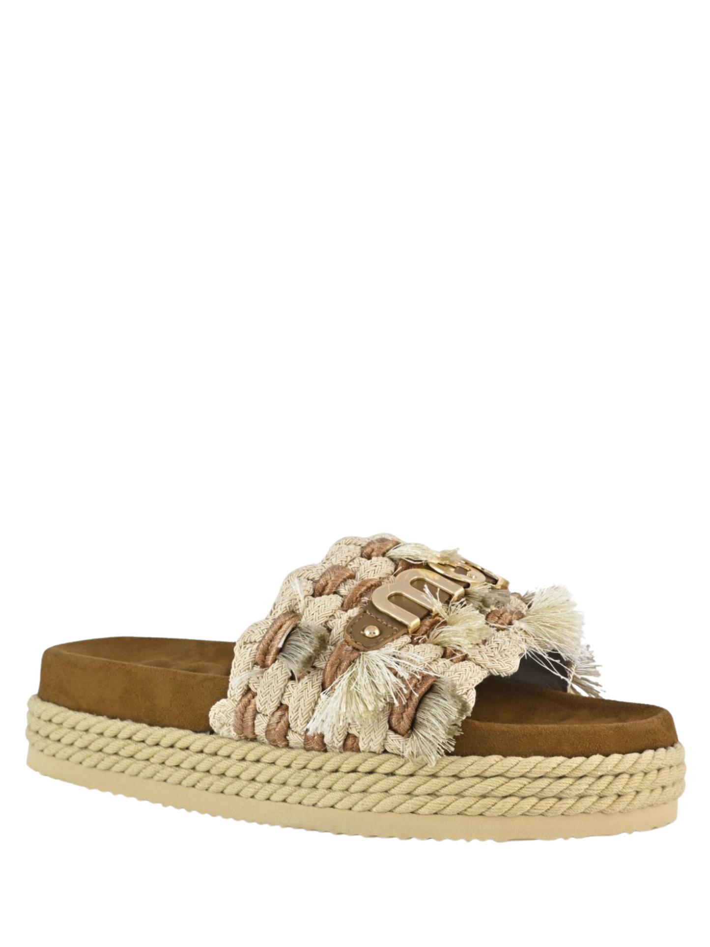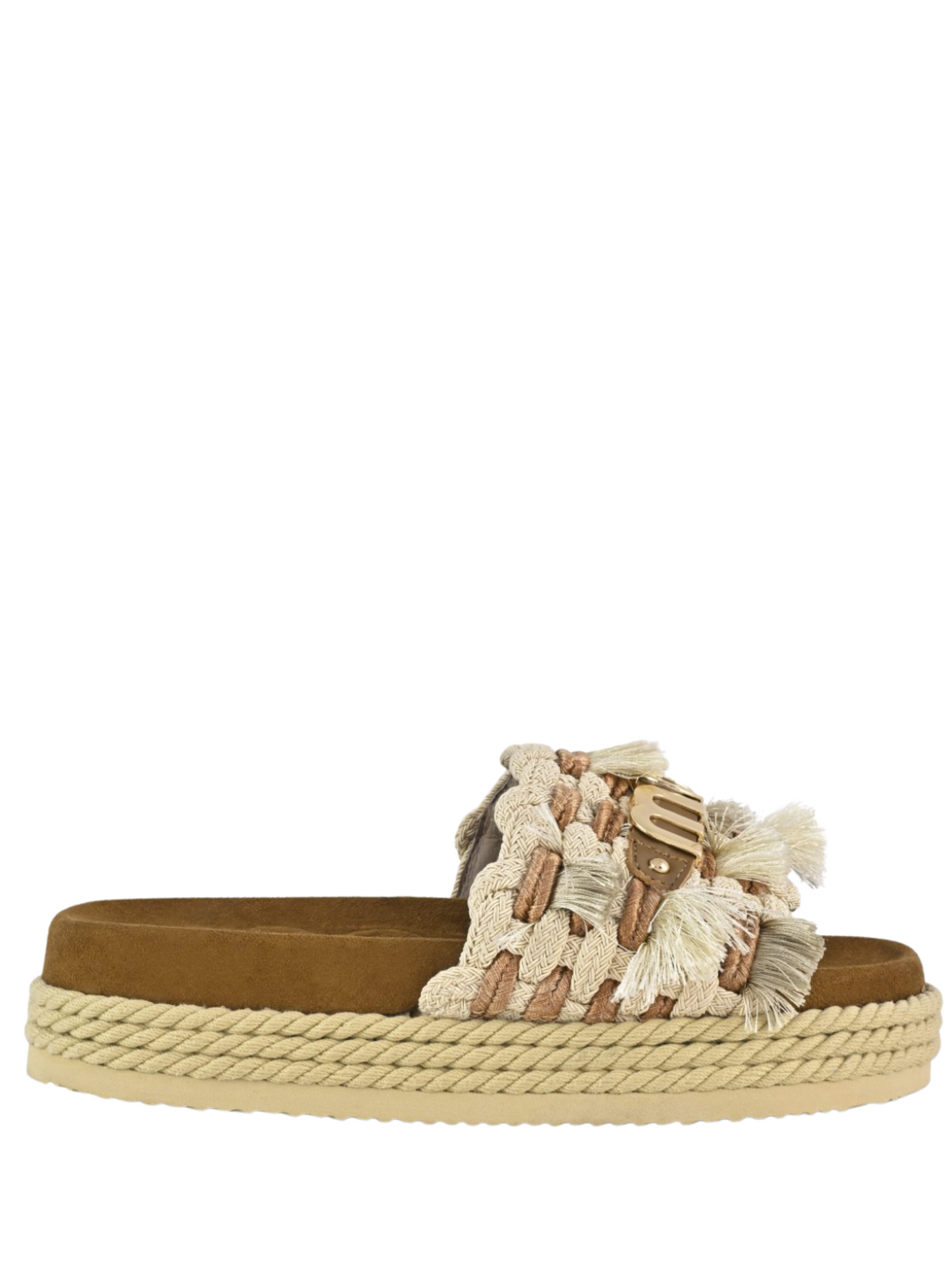 صندل MOU نسائي ذو شريط واحد وحبل بشراشيب باللون البيج