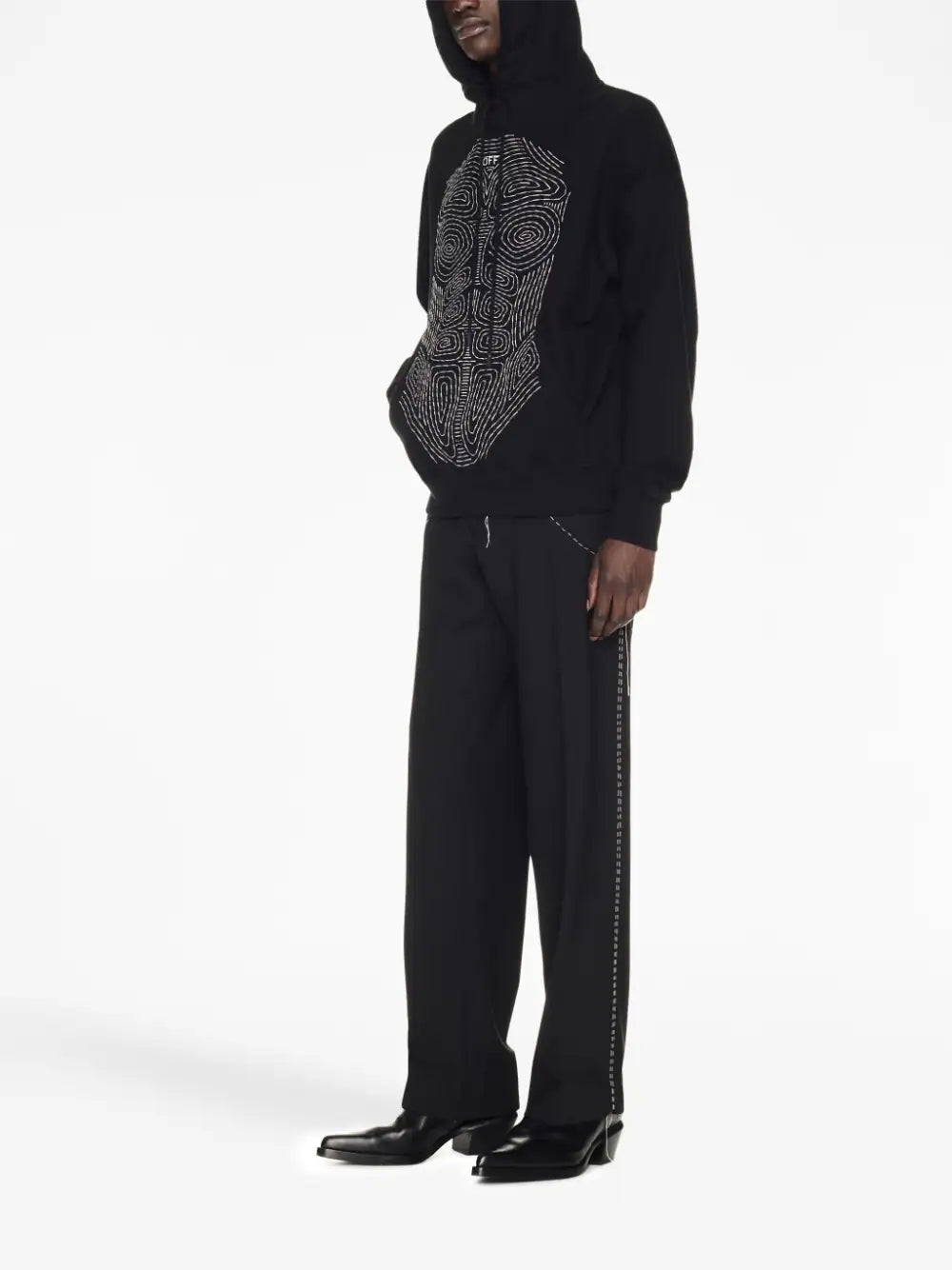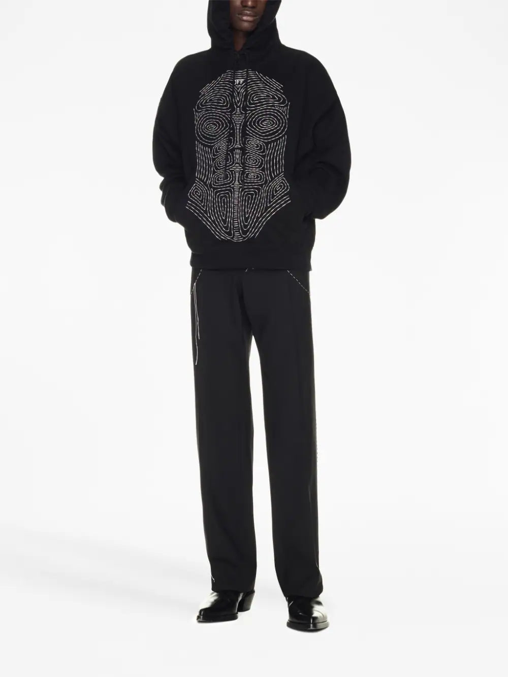 هودي Body Stitch من القطن من OFF-WHITE يتميز باللونين الأسود والأبيض والقطن وطباعة الشعار على الجهة الأمامية وغطاء رأس برباط وأكمام طويلة وأساور وحاشية مضلعة.