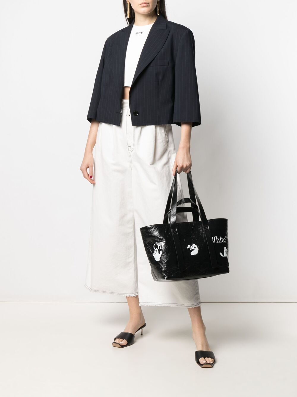 آخر ما ستبحثين عنه قبل مغادرة المنزل من الآن فصاعدًا؟ حقيبة التسوق التجارية هذه من أوف-وايت، بشعارها المطبوع. لن تخذلكِ أبدًا.