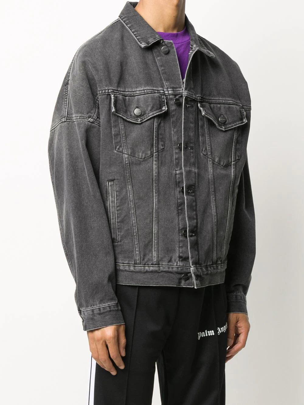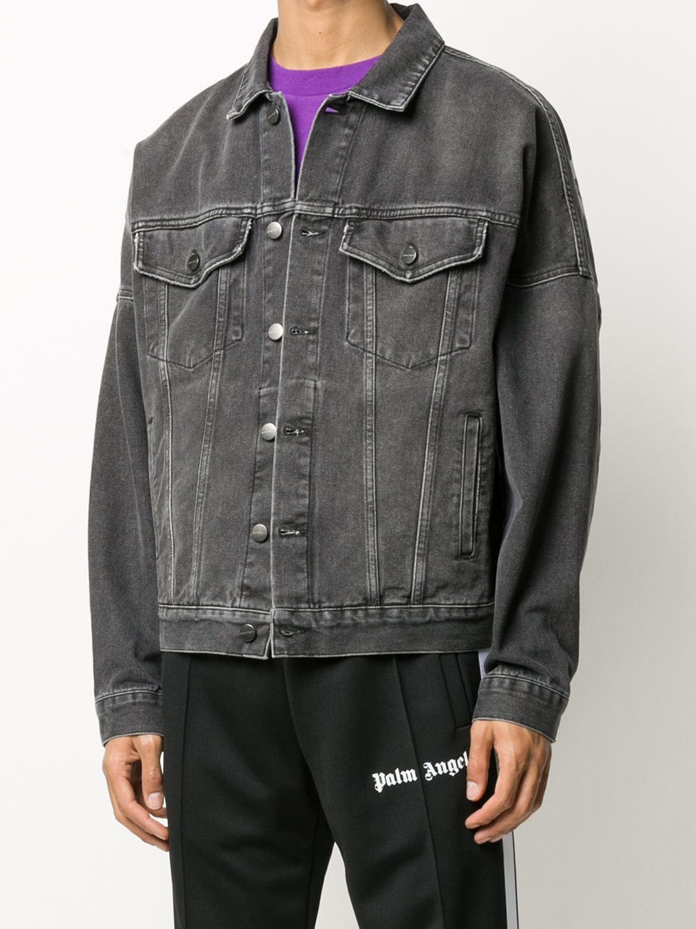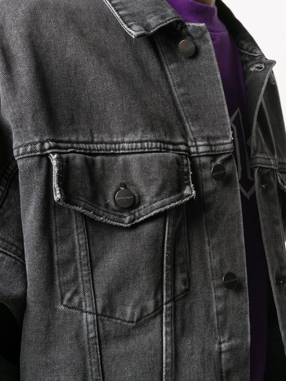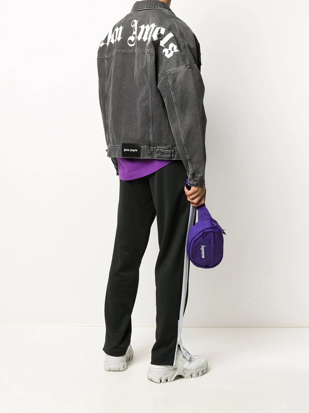 جاكيت جينز بشعار PALM ANGELS باللون الأسود والأبيض