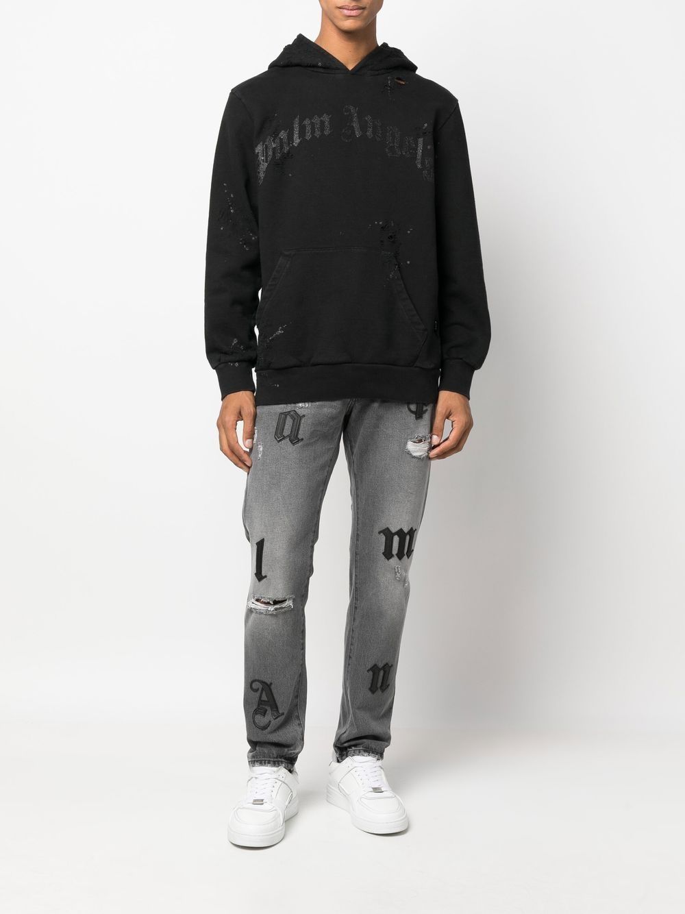 هودي بطبعة شعار PALM ANGELS باللون الأسود بتصميم باهت
