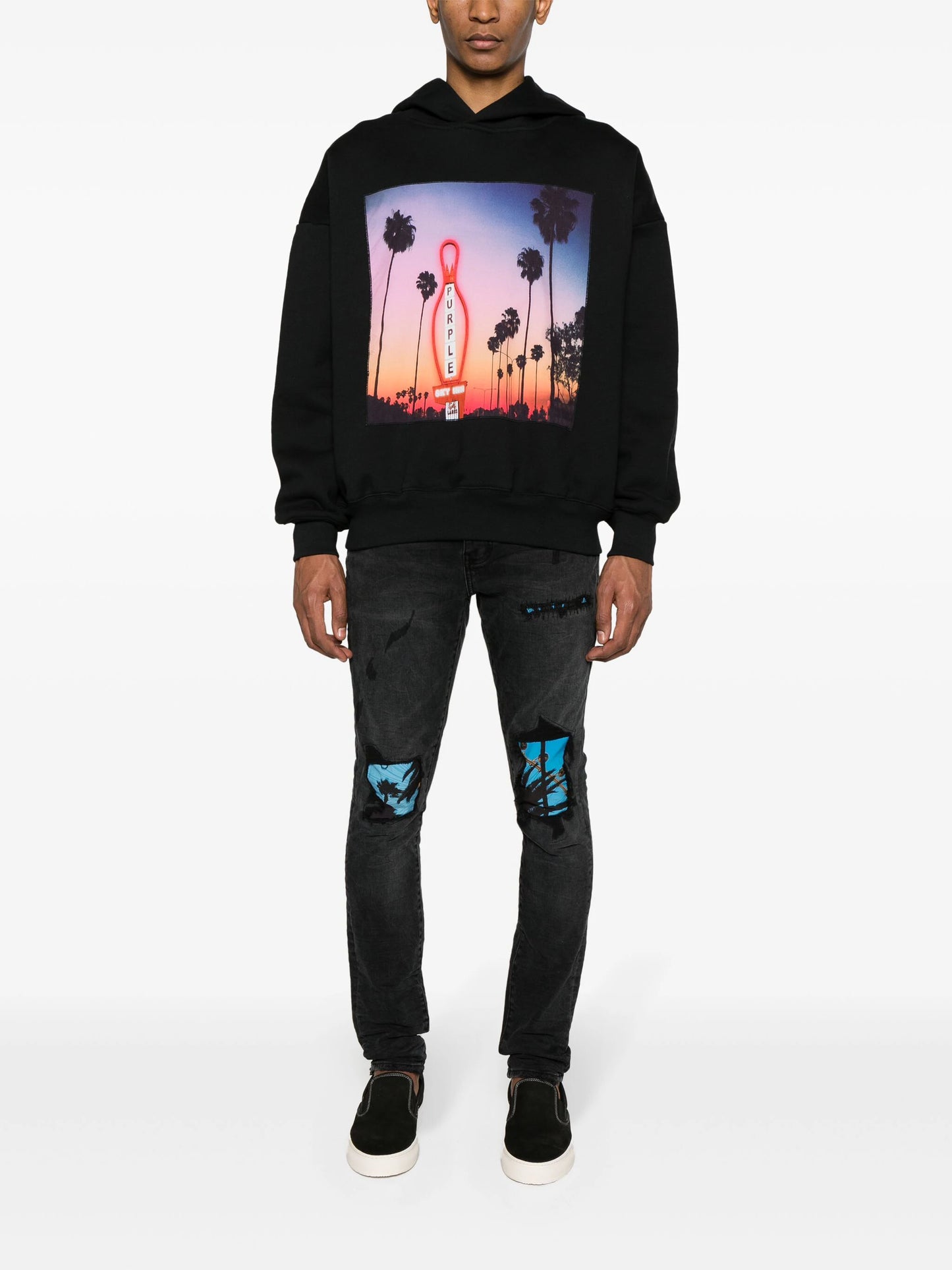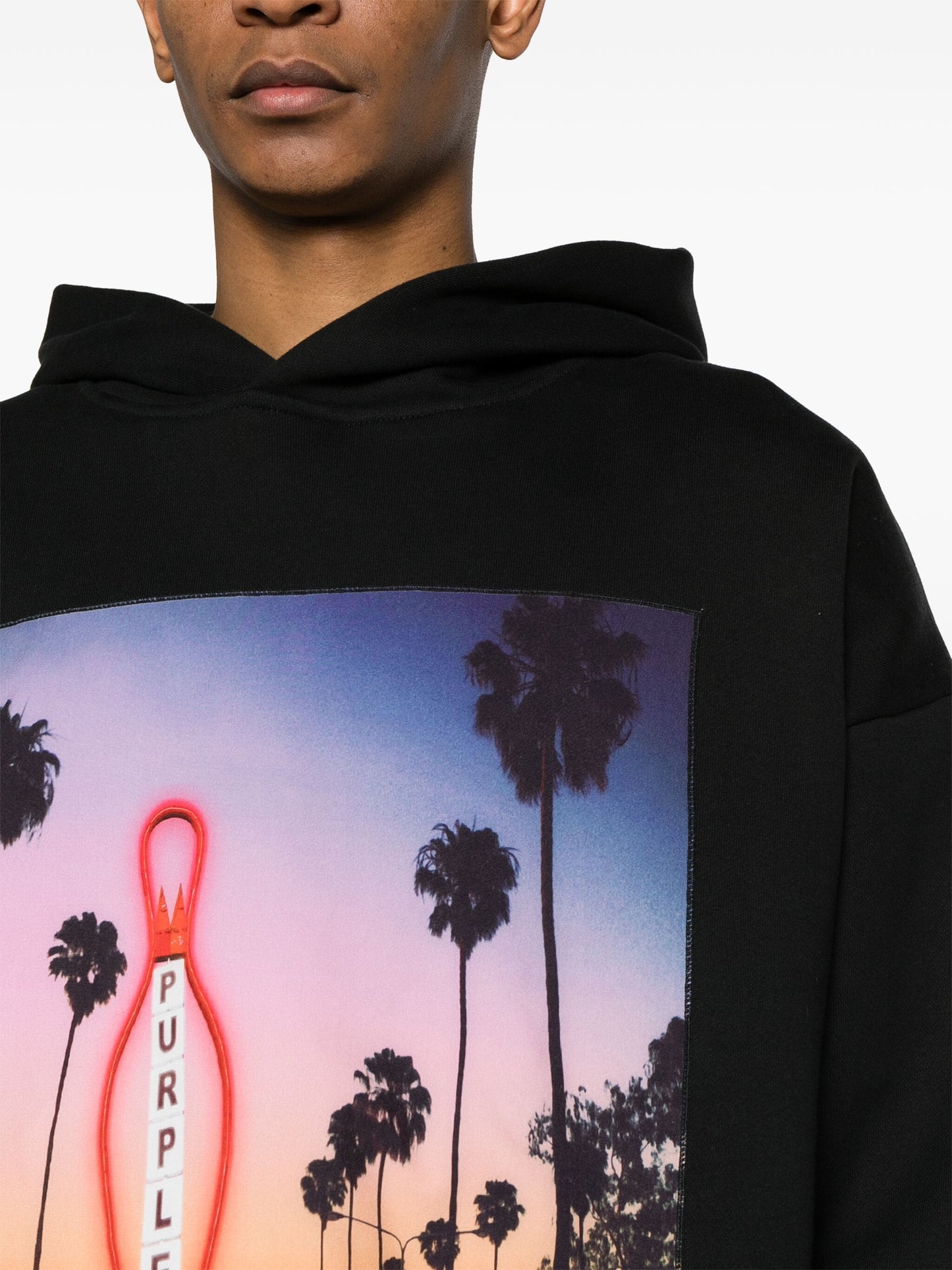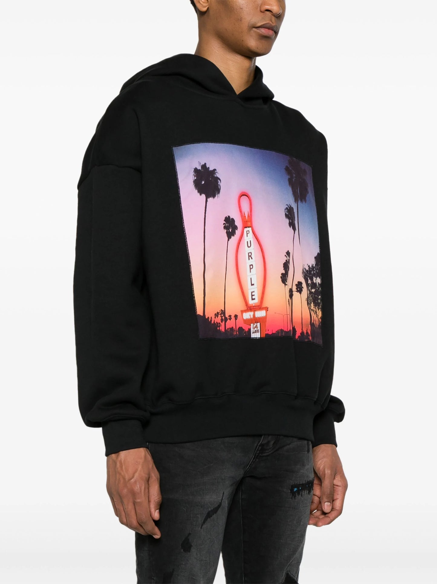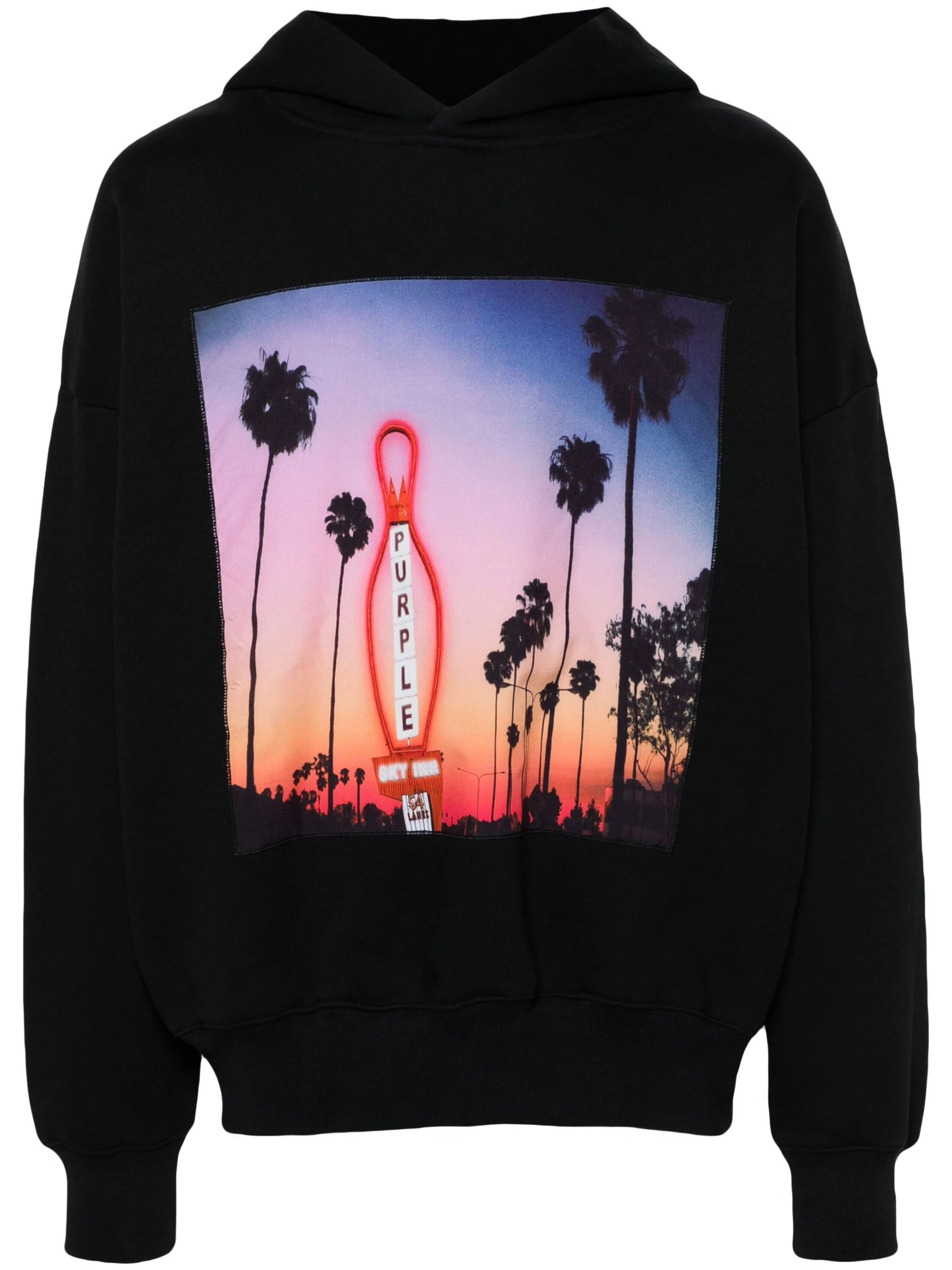 هودي بطبعة غروب الشمس باللون الأسود PURPLE BRAND x BLUE SKY INN