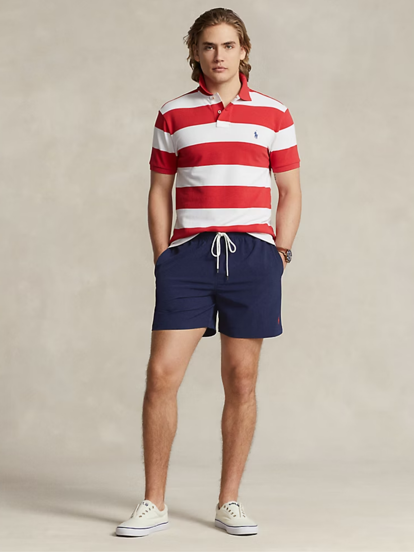 شورت سباحة بولو بوني مطرز من رالف لورين، أزرق داكن