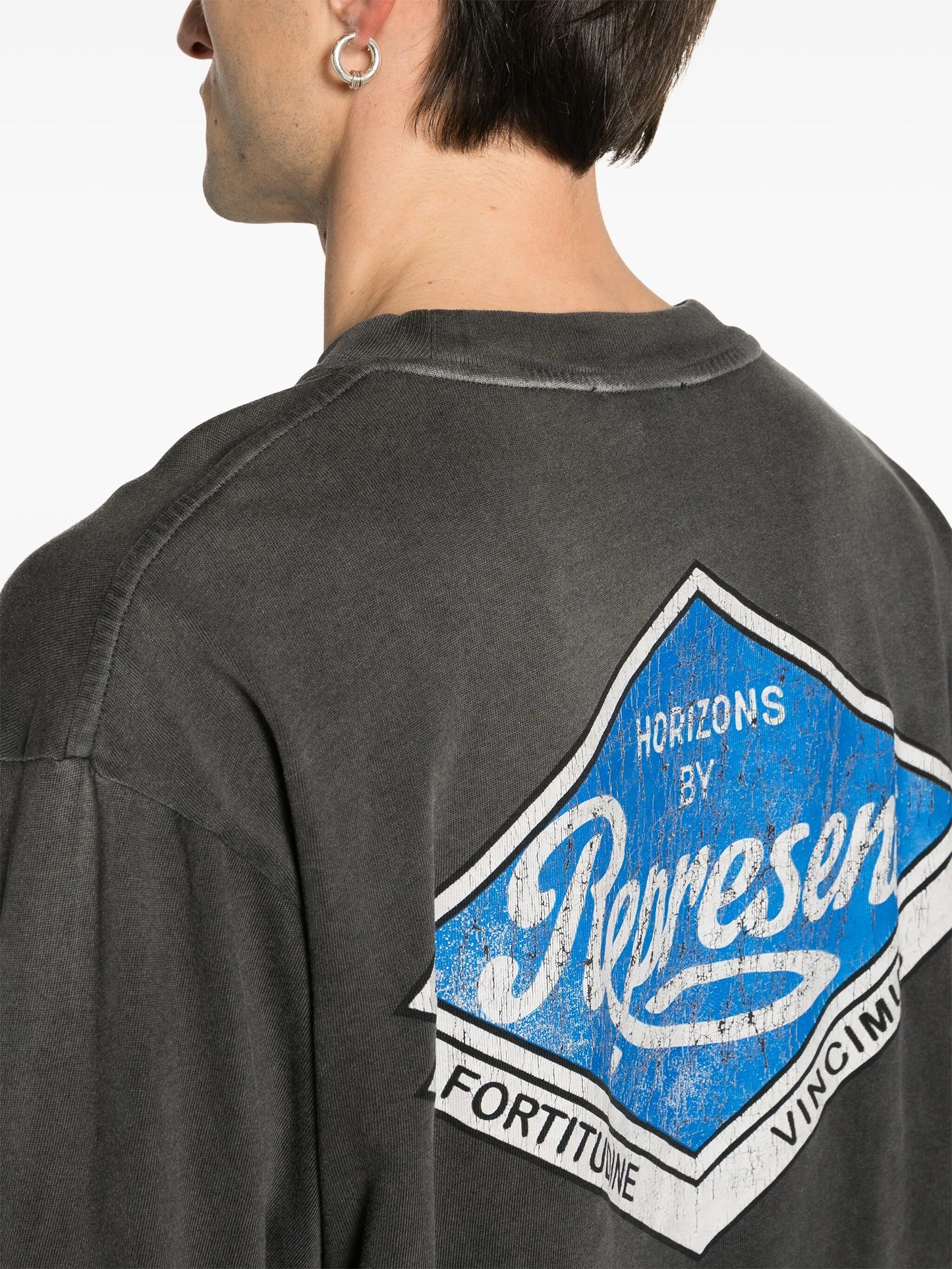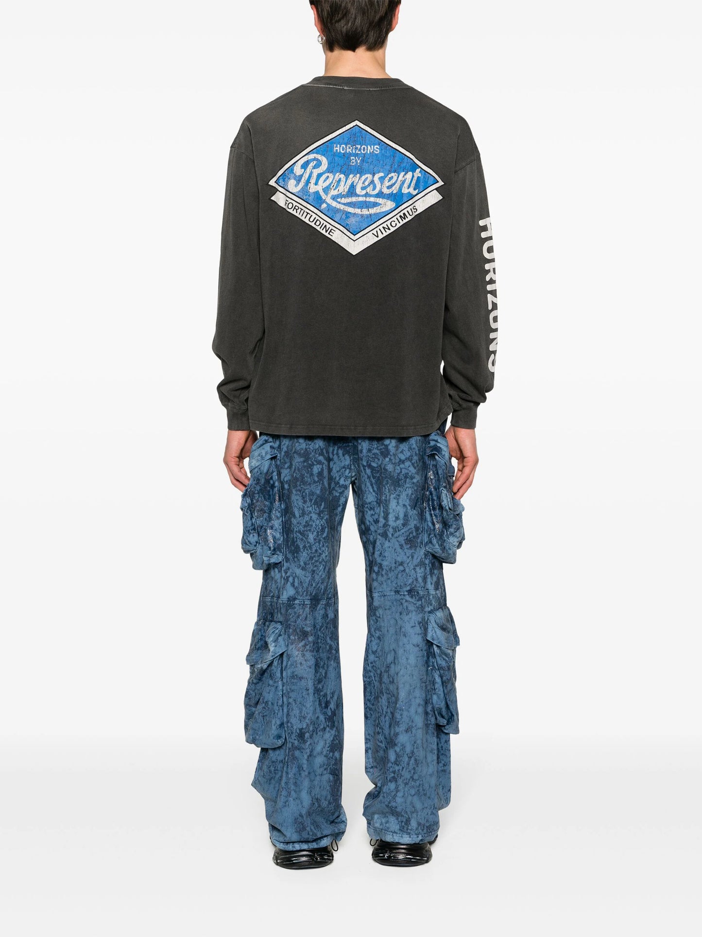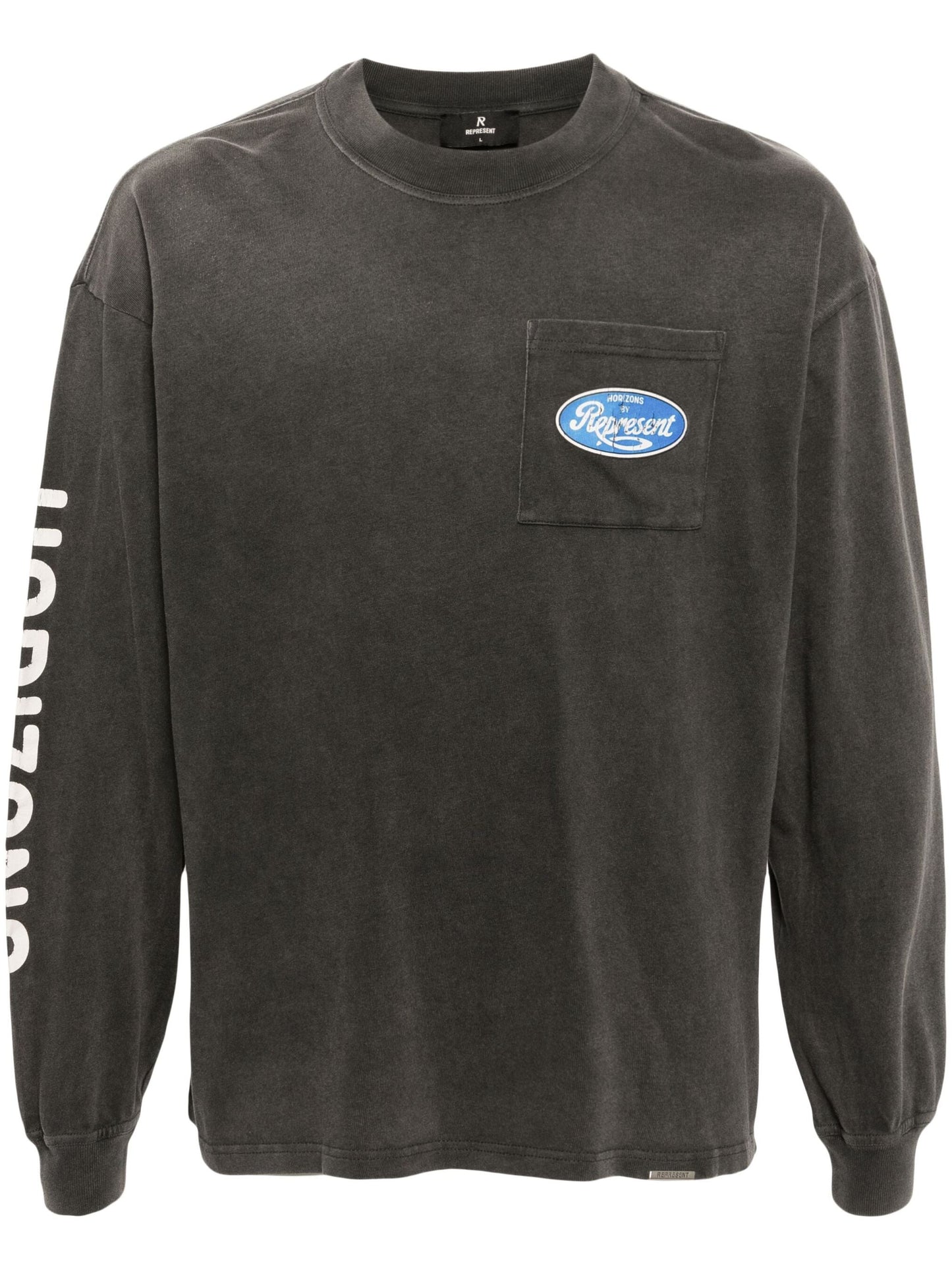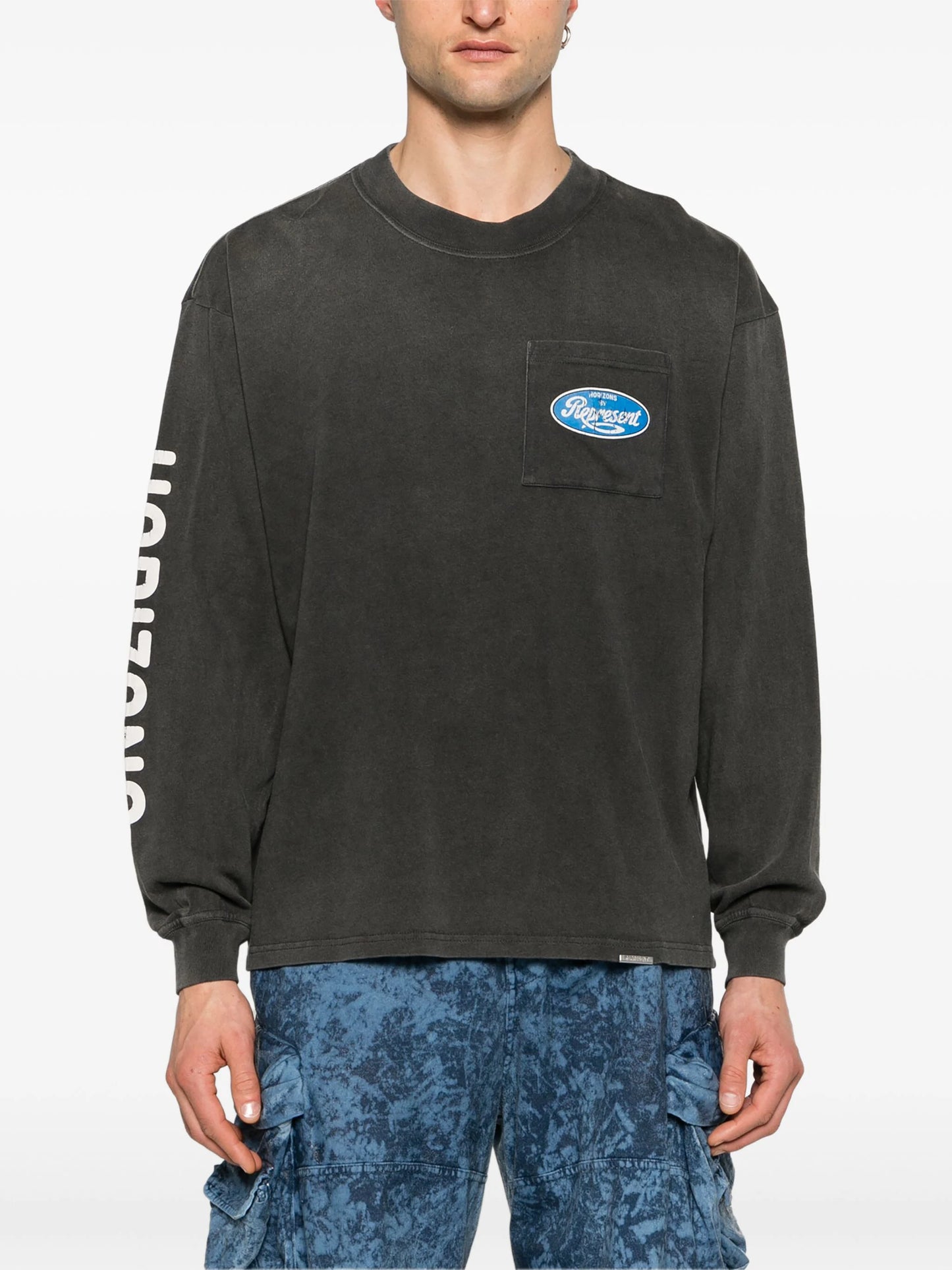 تي شيرت REPRESENT Classic Parts Graphic Cotton بأكمام طويلة باللون الأسود القديم
