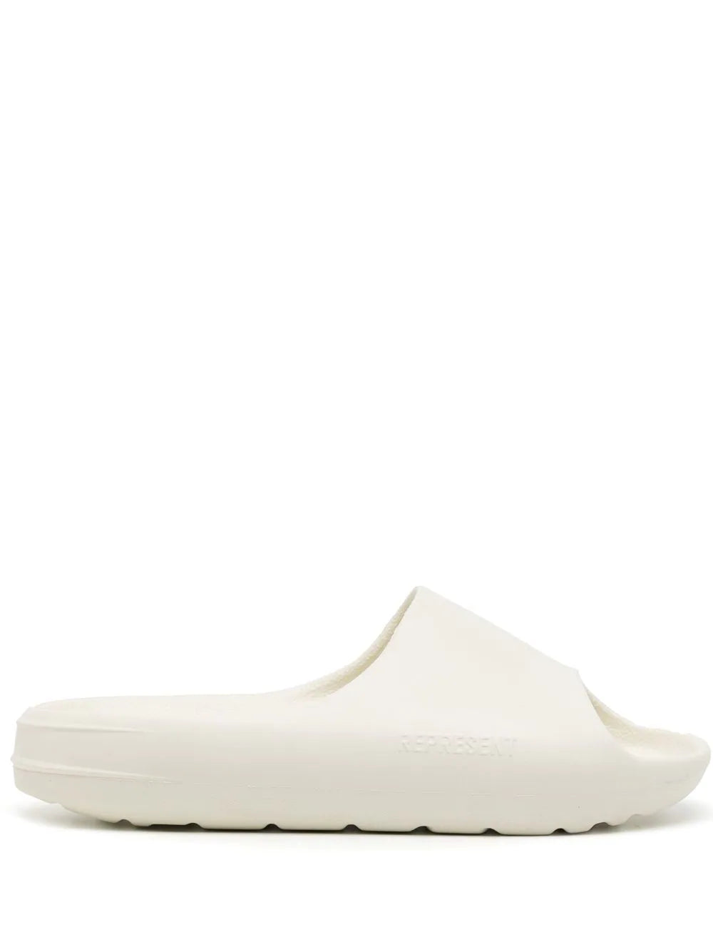 تقدم REPRESENT مظهرًا جماليًا مريحًا مع هذه الأحذية ذات اللون الأبيض، المزينة بشعار منقوش داخليًا ومُجهزة بنعل مطاطي مضلع.