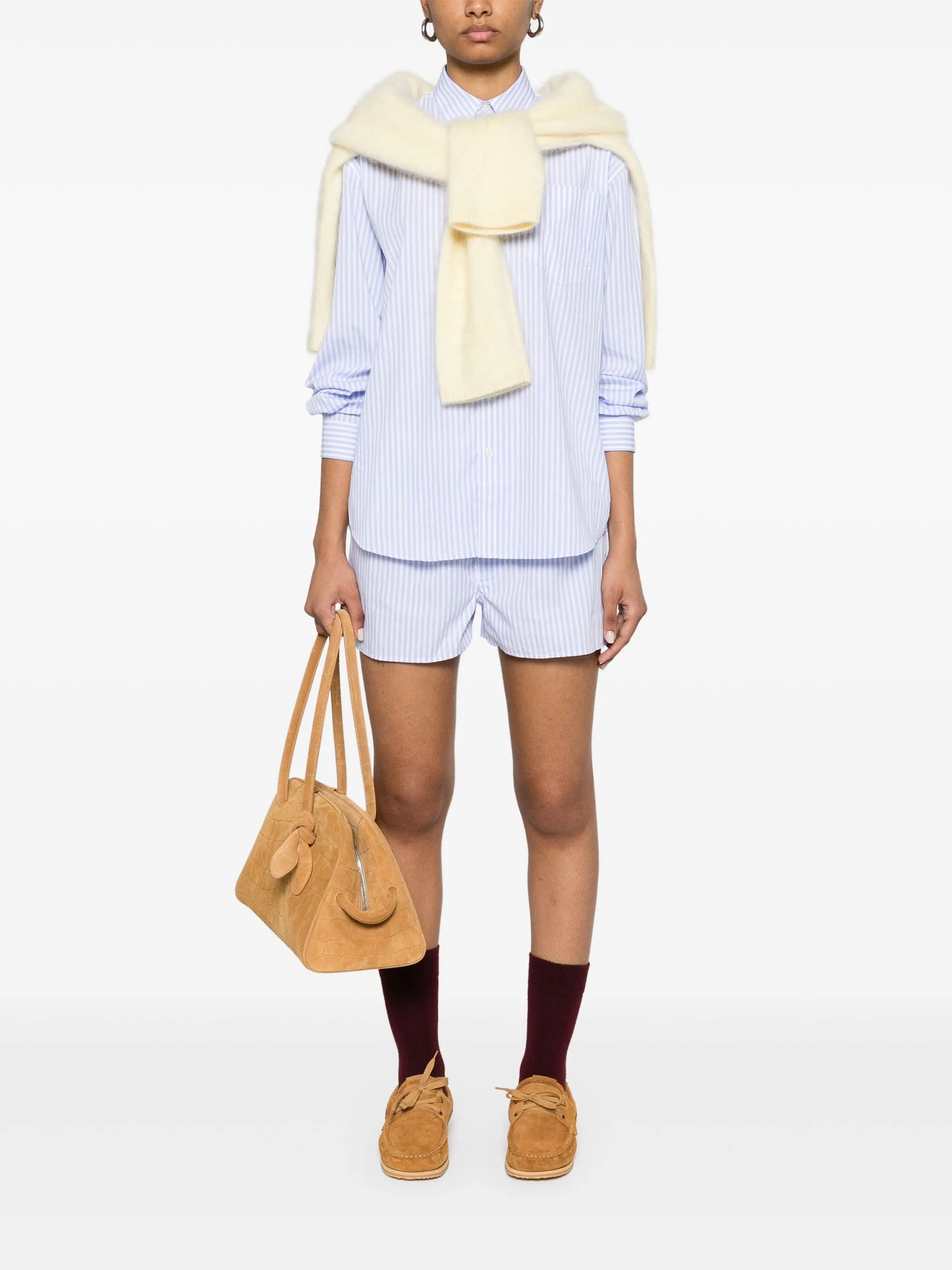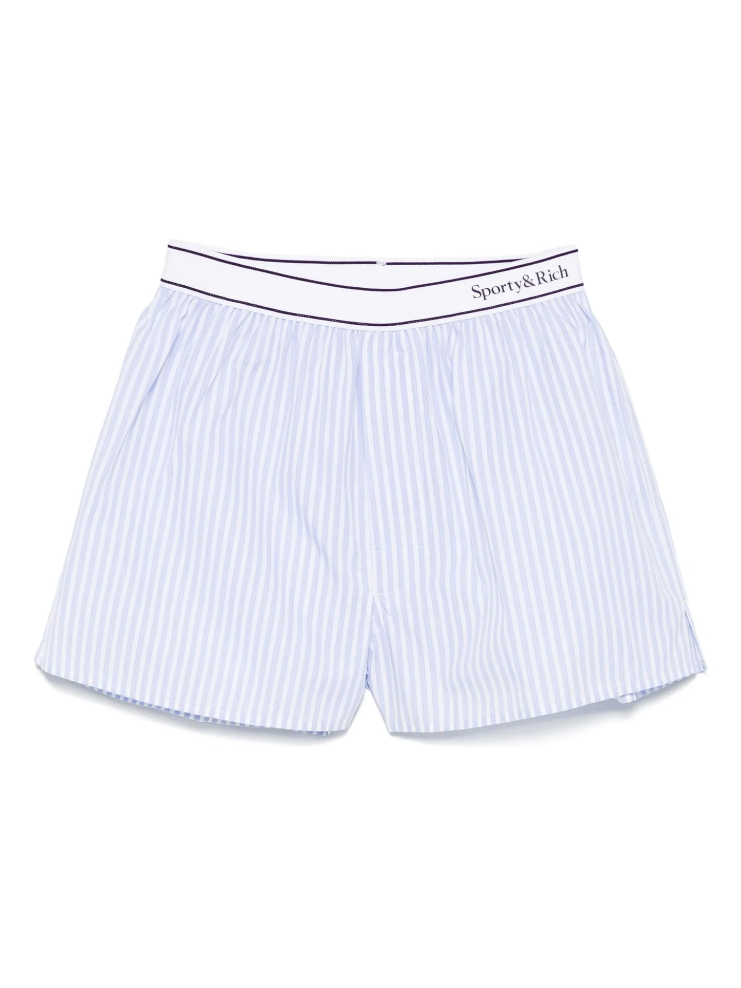 SPORTY & RICH WOMEN Serif Logo Boxer Shorts Light Blue Striped/White