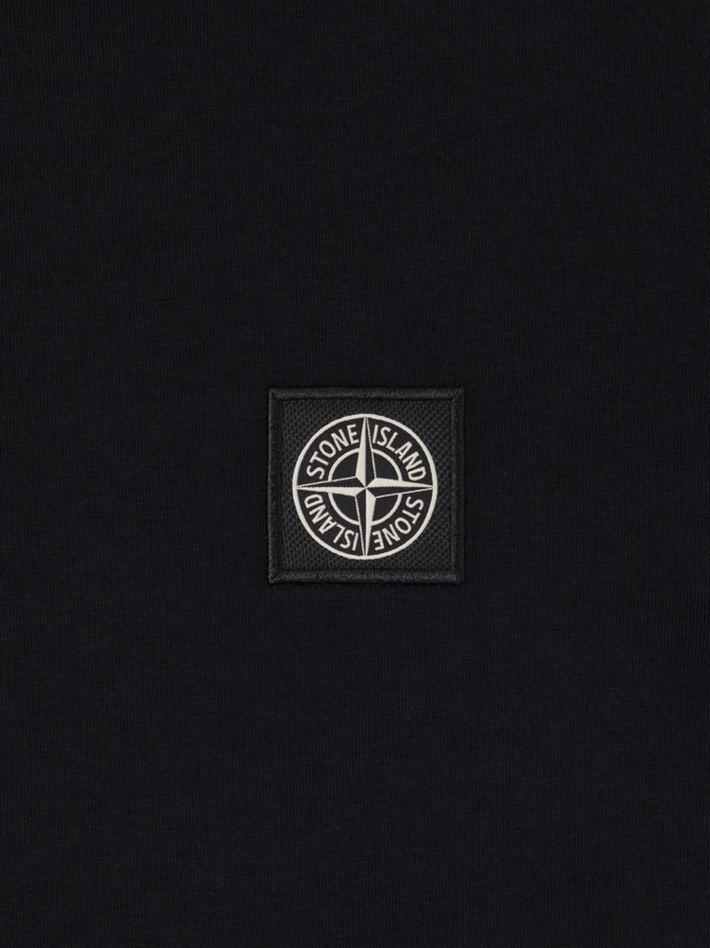 Ribbed neckline. Small Stone Island Compass logo patch on chest. Chain stitching along sleeve and bottom hems.