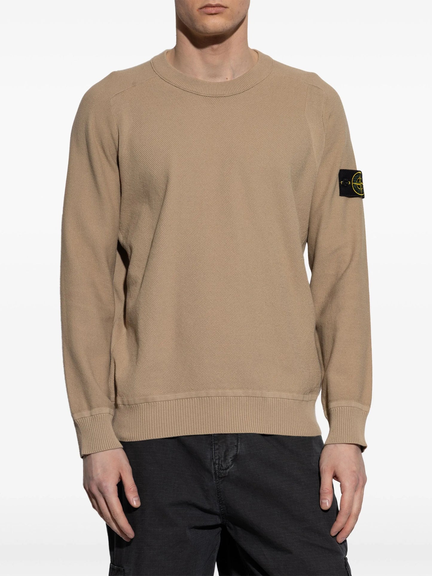 سويت شيرت بياقة دائرية وشعار STONE ISLAND، بسكويت