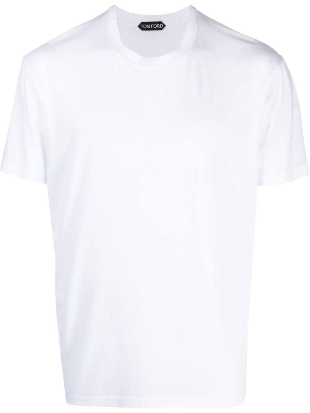 تي شيرت توم فورد قطني بأكمام قصيرة ورقبة دائرية باللون الأبيض