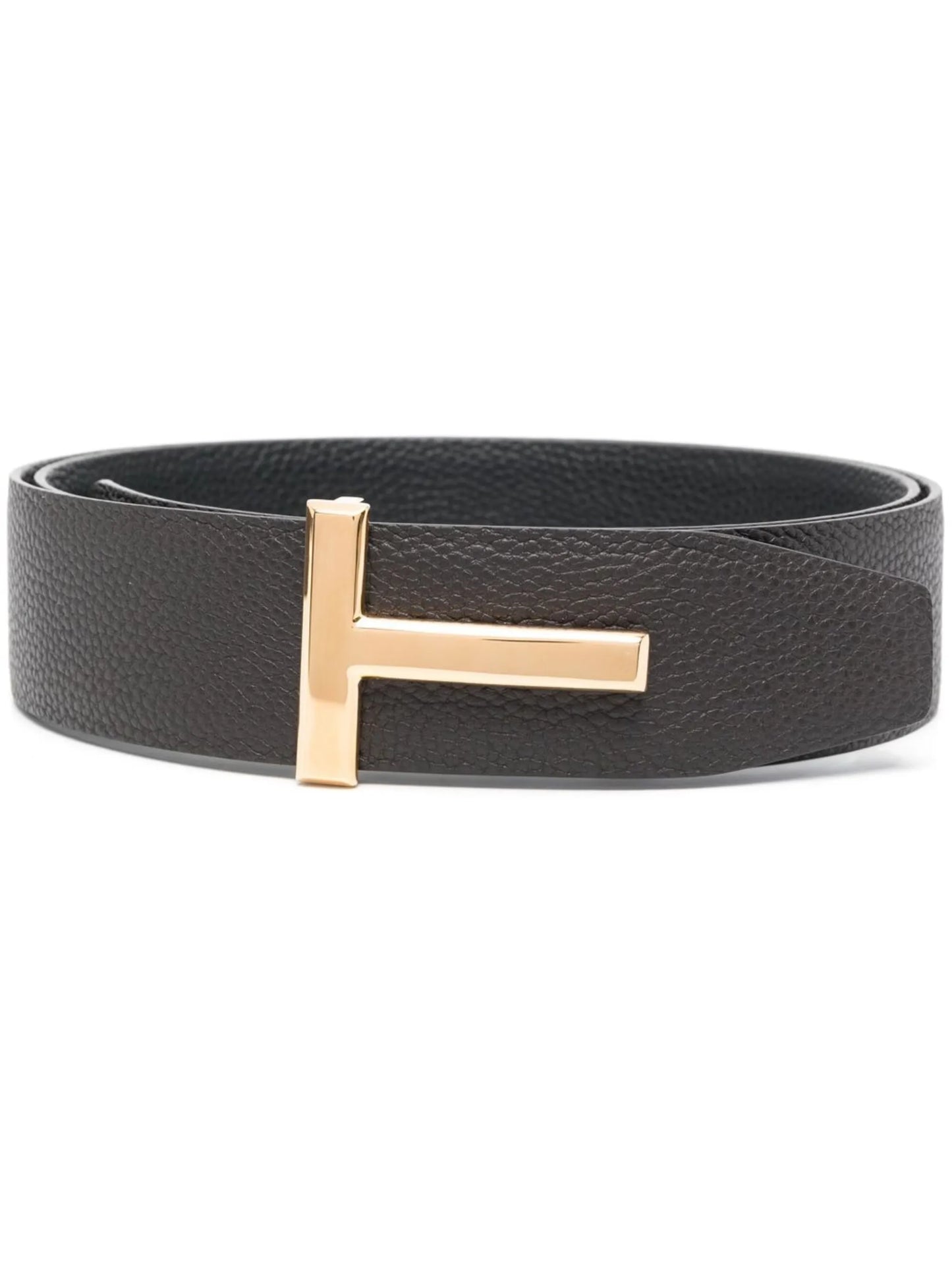 حزام T القابل للعكس بشعار T من توم فورد، بني/أسود