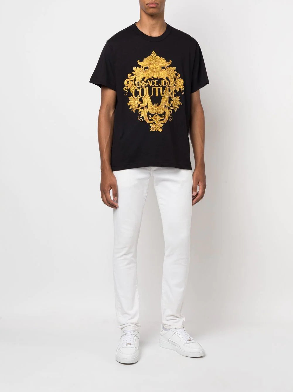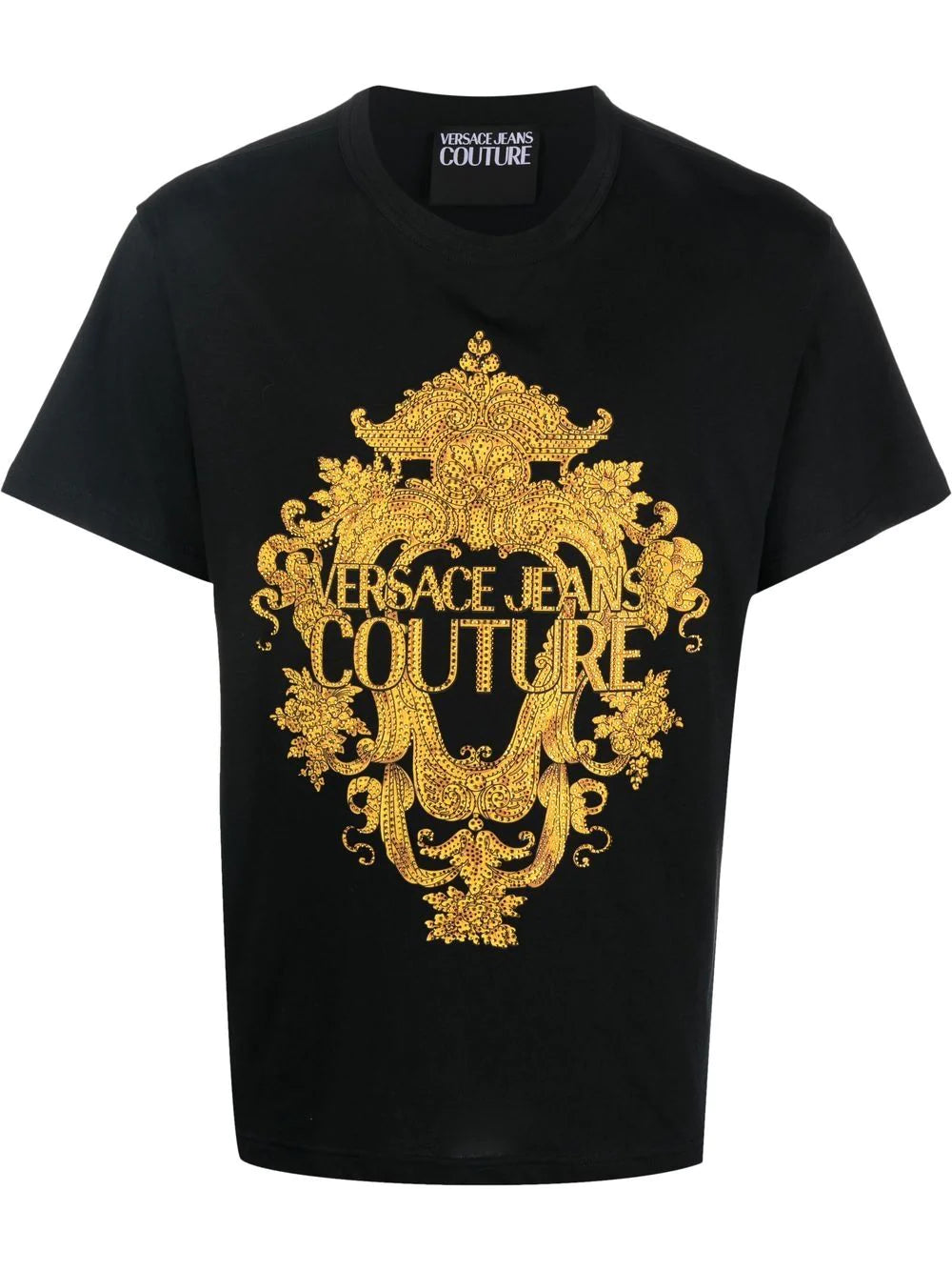 تي شيرت فيرساتشي باروك كريستال بشعار أسود