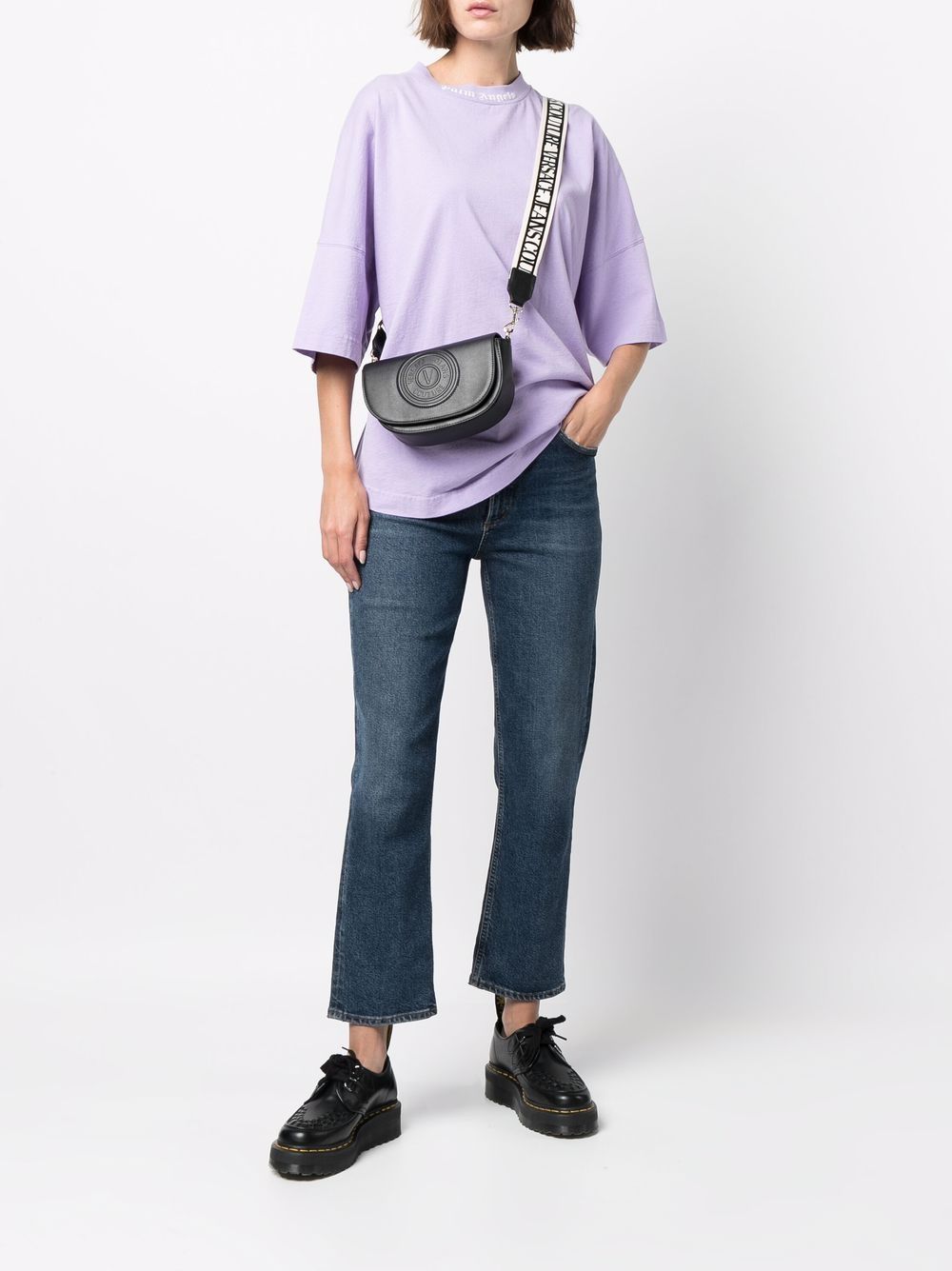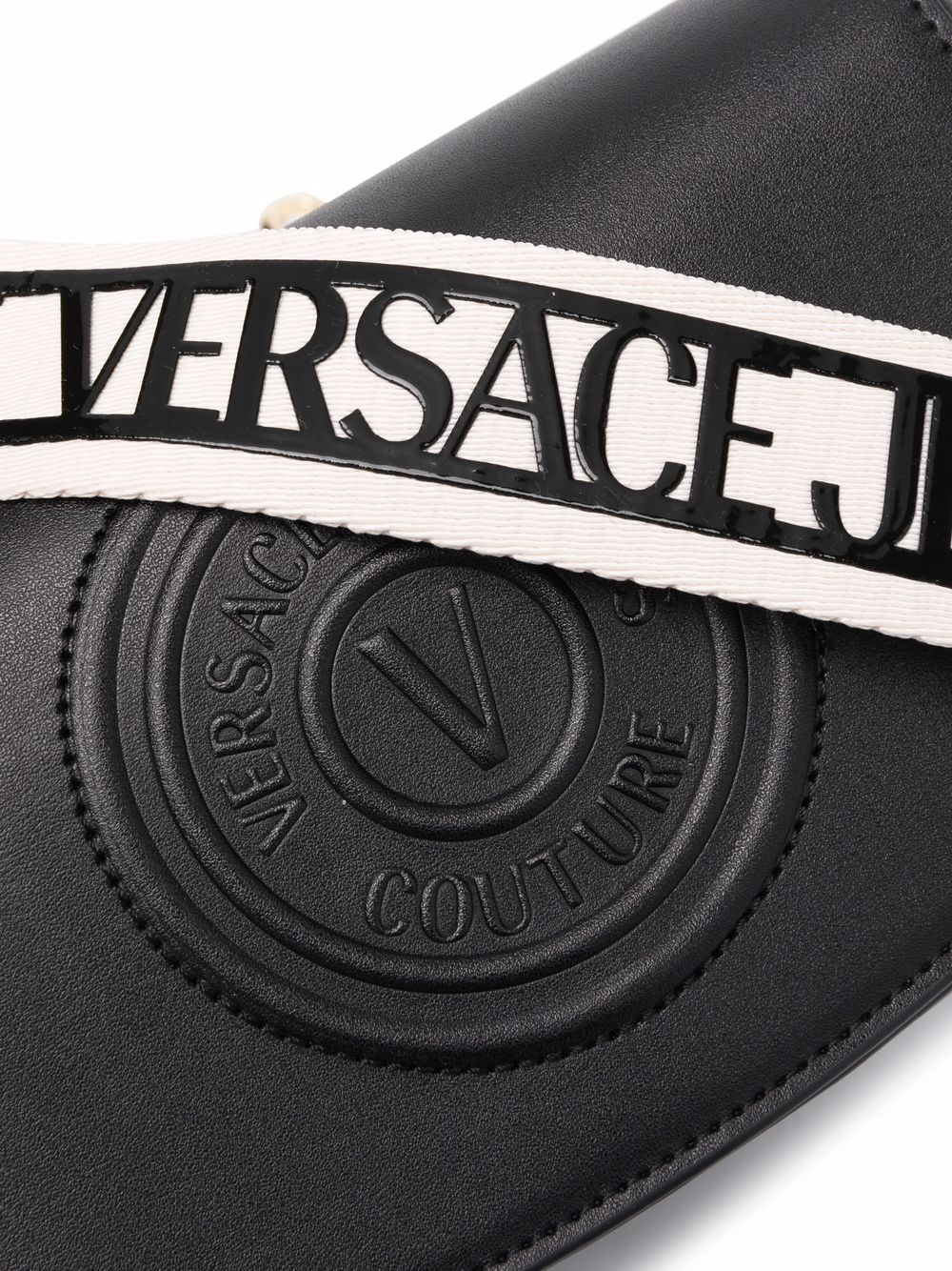 تتميز هذه الحقيبة ذات الجسم المتقاطع المصنوعة من الجلد الصناعي باللون الأسود من Versace Jeans Couture بشعار منقوش لمظهر يمكن التعرف عليه، كما أنها مزودة بحزام كتف قابل للفصل منقوش بالشعار.