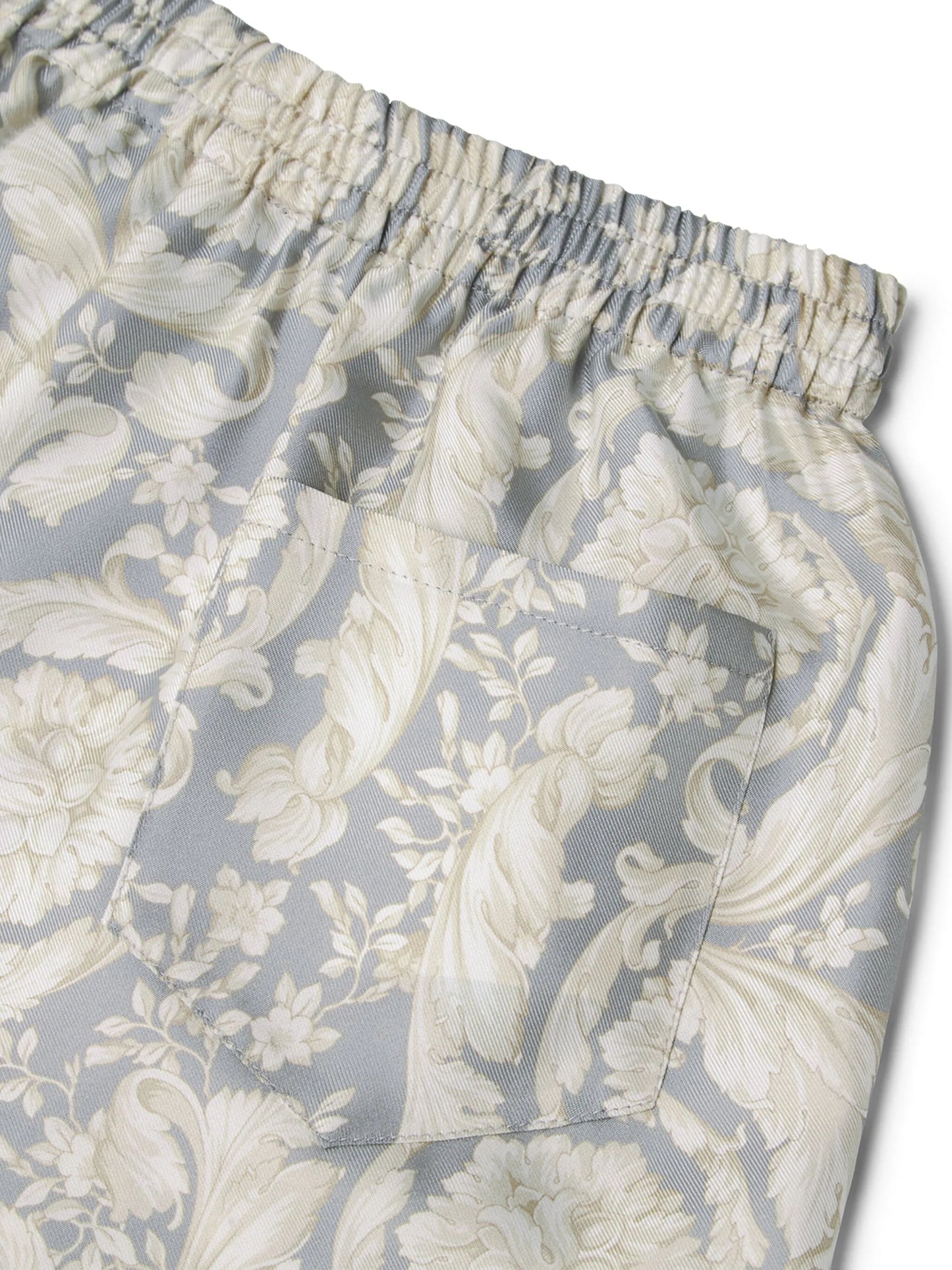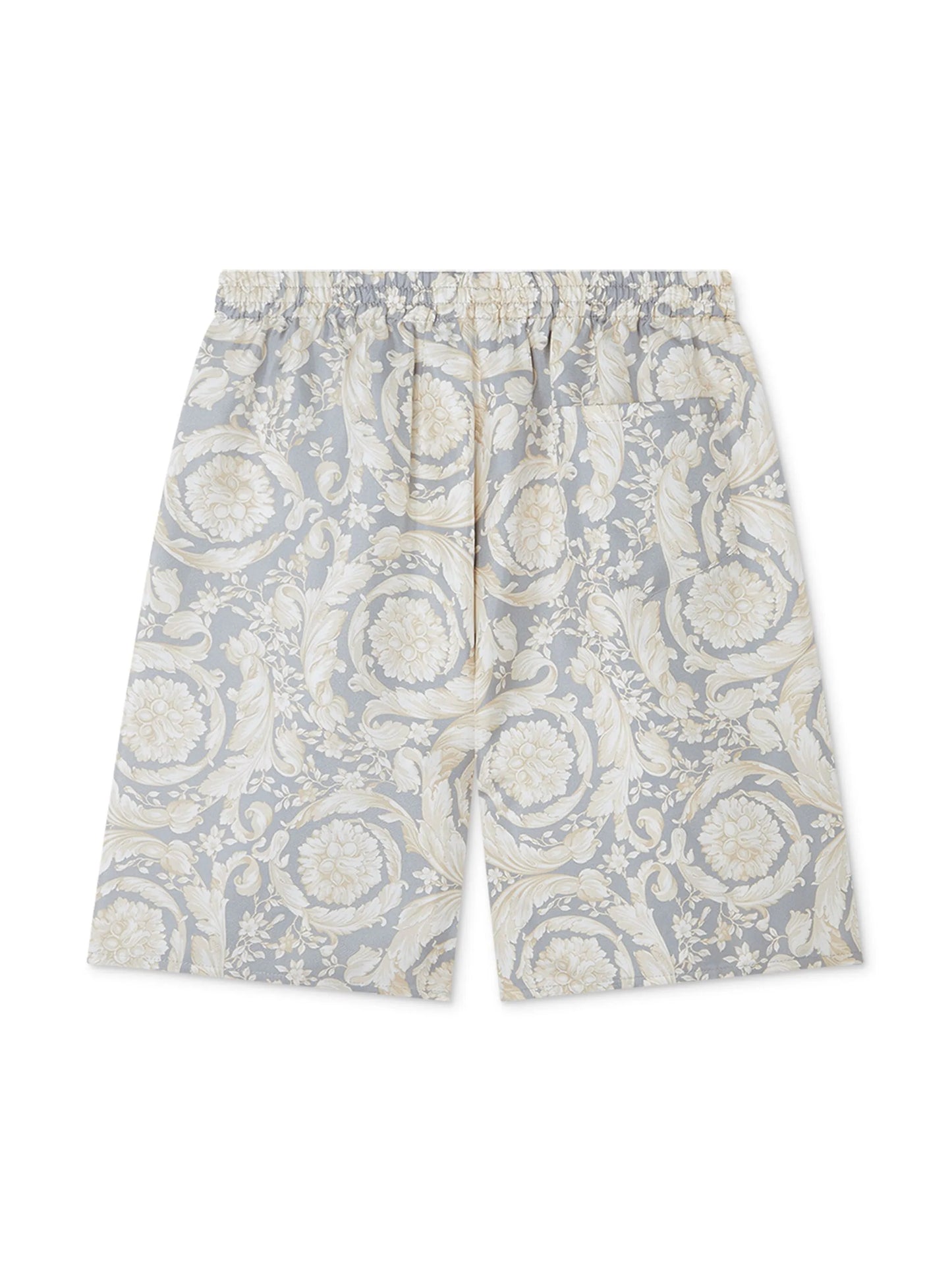 VERSACE KIDS Boys Barocco-print Silk Bermuda Shorts Light Grey/Multicolour