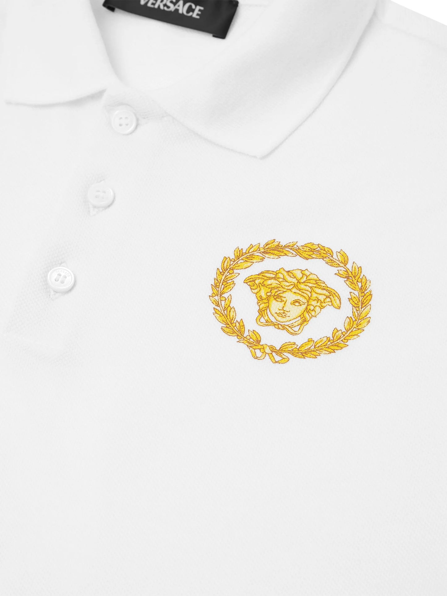 VERSACE KIDS Boys Medusa Head Printed Polo Shirt White/Gold