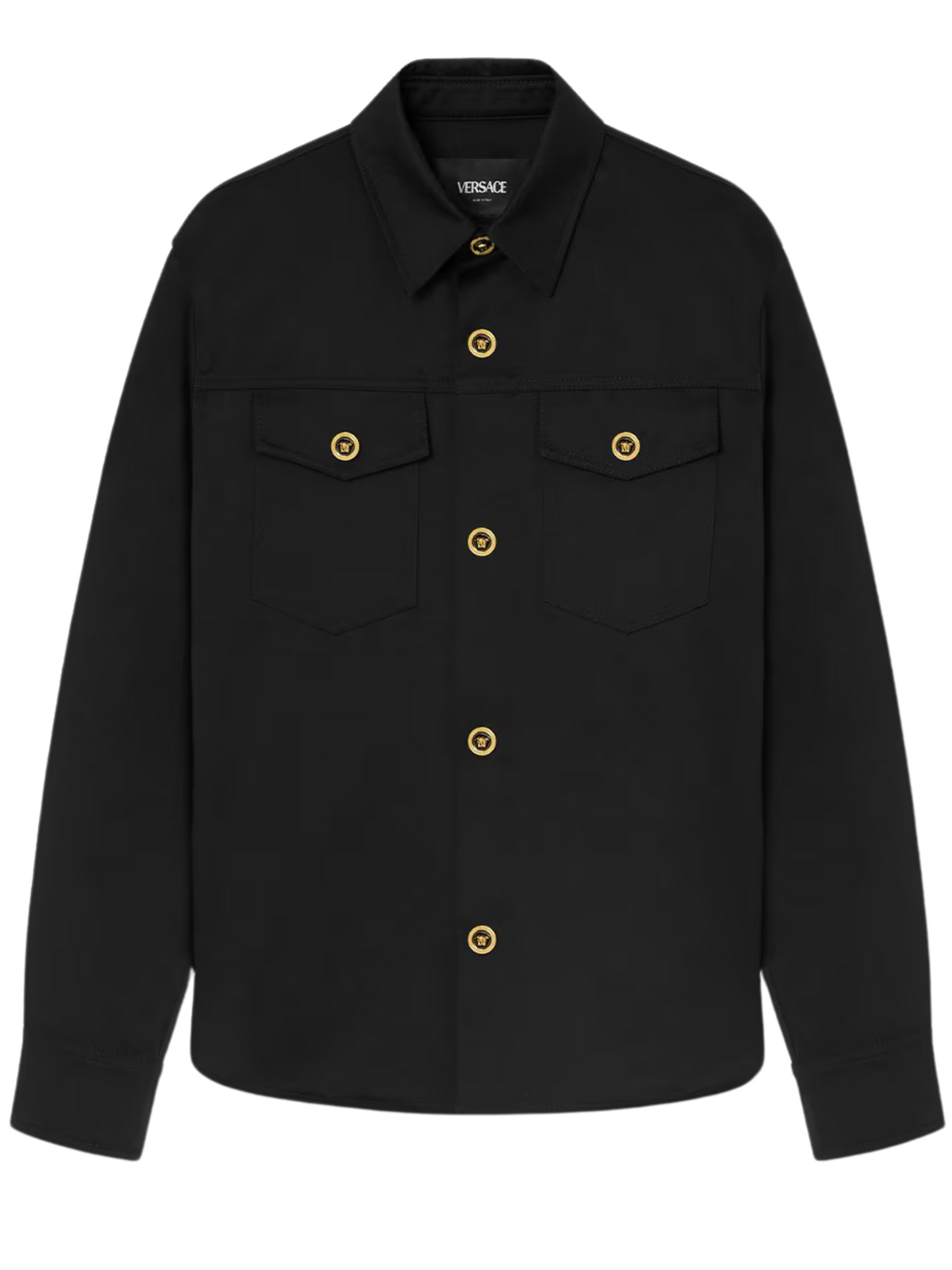 جاكيت قميص بأزرار وشعار VERSACE باللون الأسود