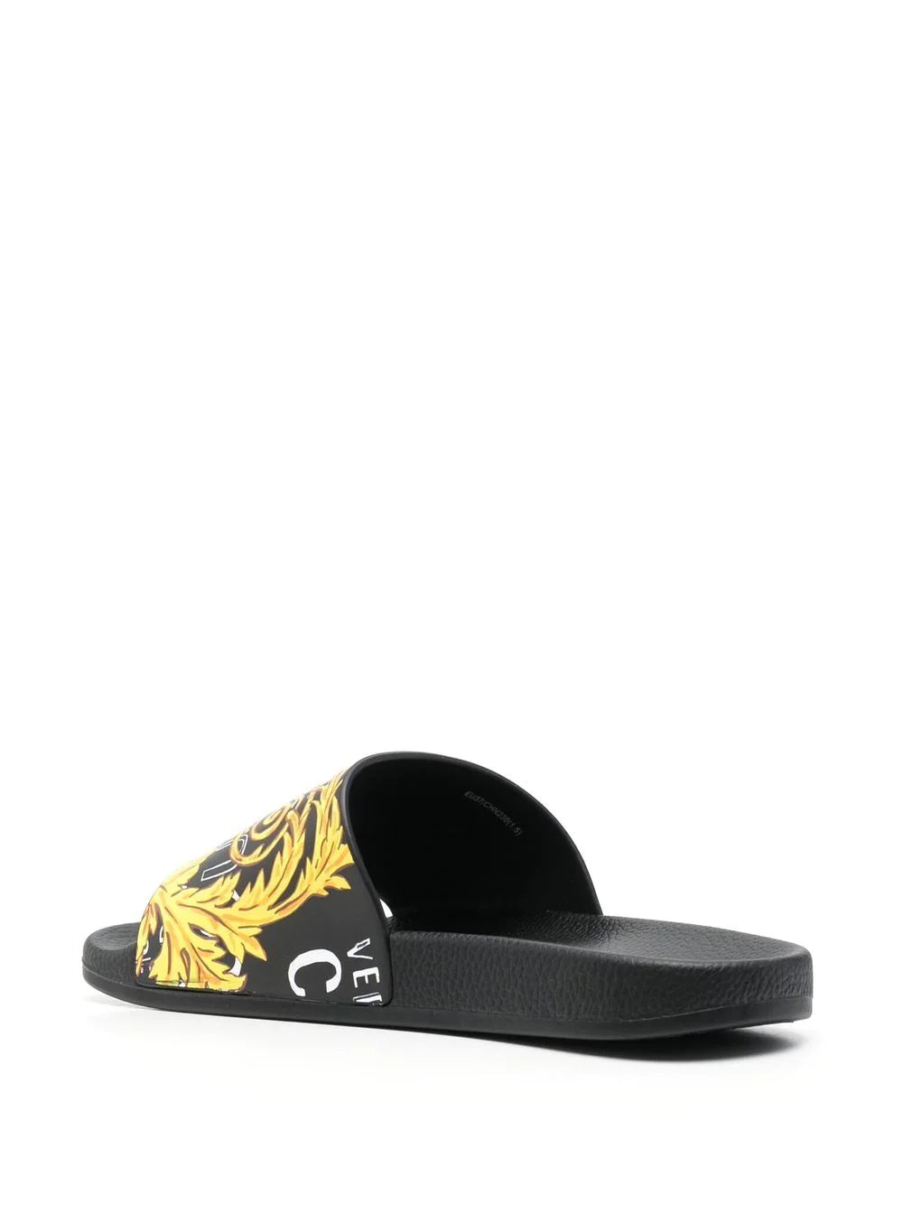 صندل فيرساتشي نسائي بطبعة شعار الباروك باللون الأسود والذهبي