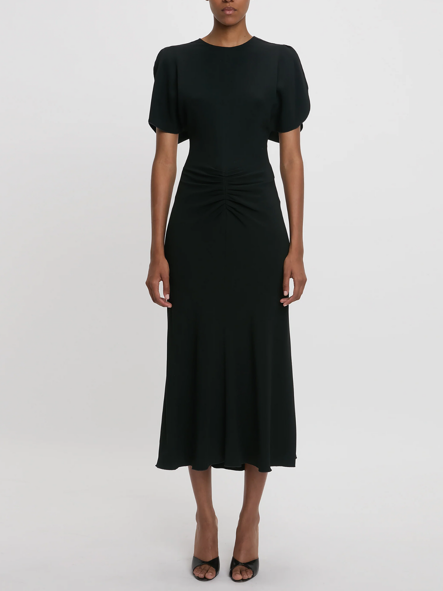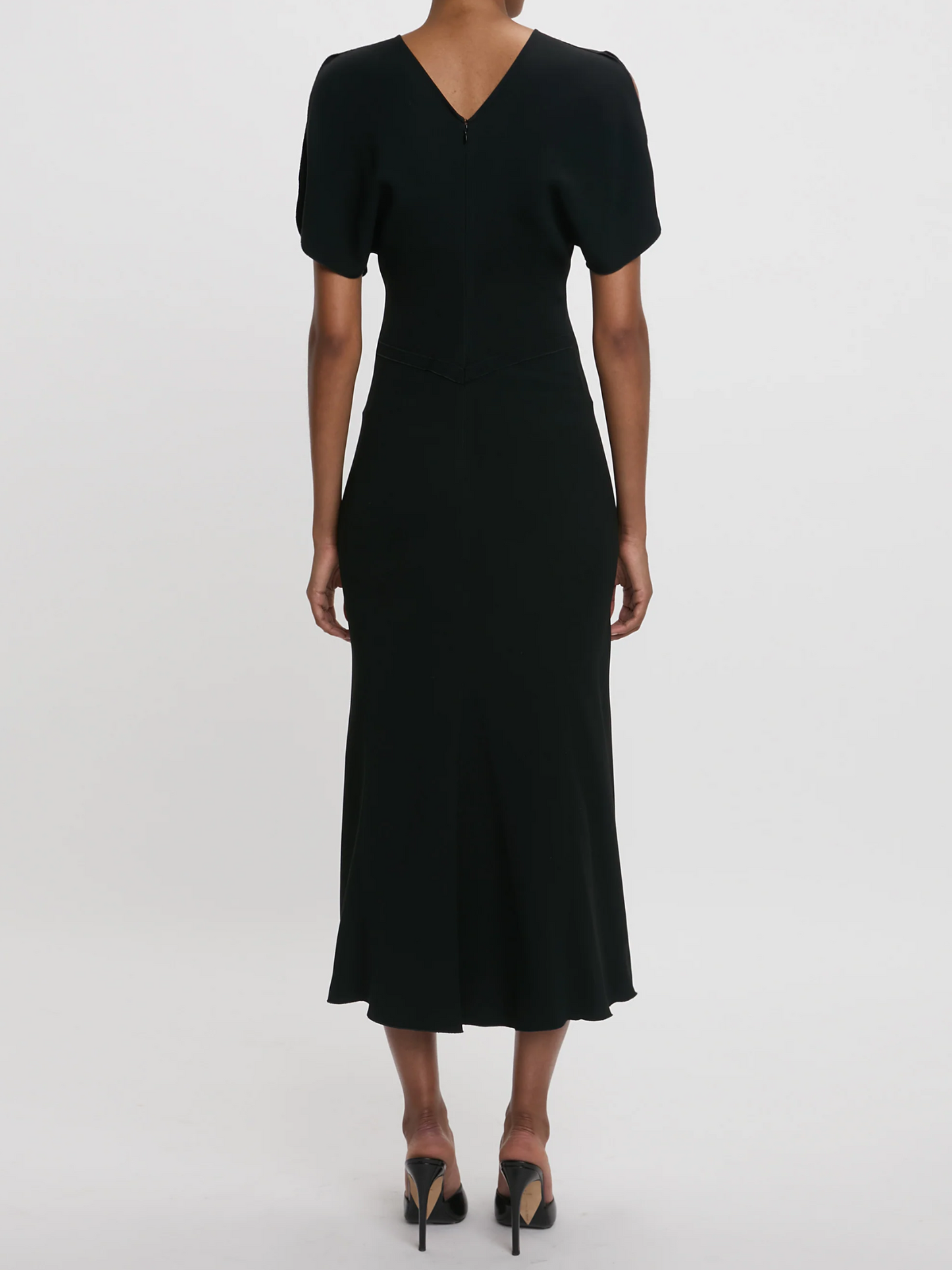 فستان فيكتوريا بيكهام نسائي متوسط الطول بخصر مجمع أسود