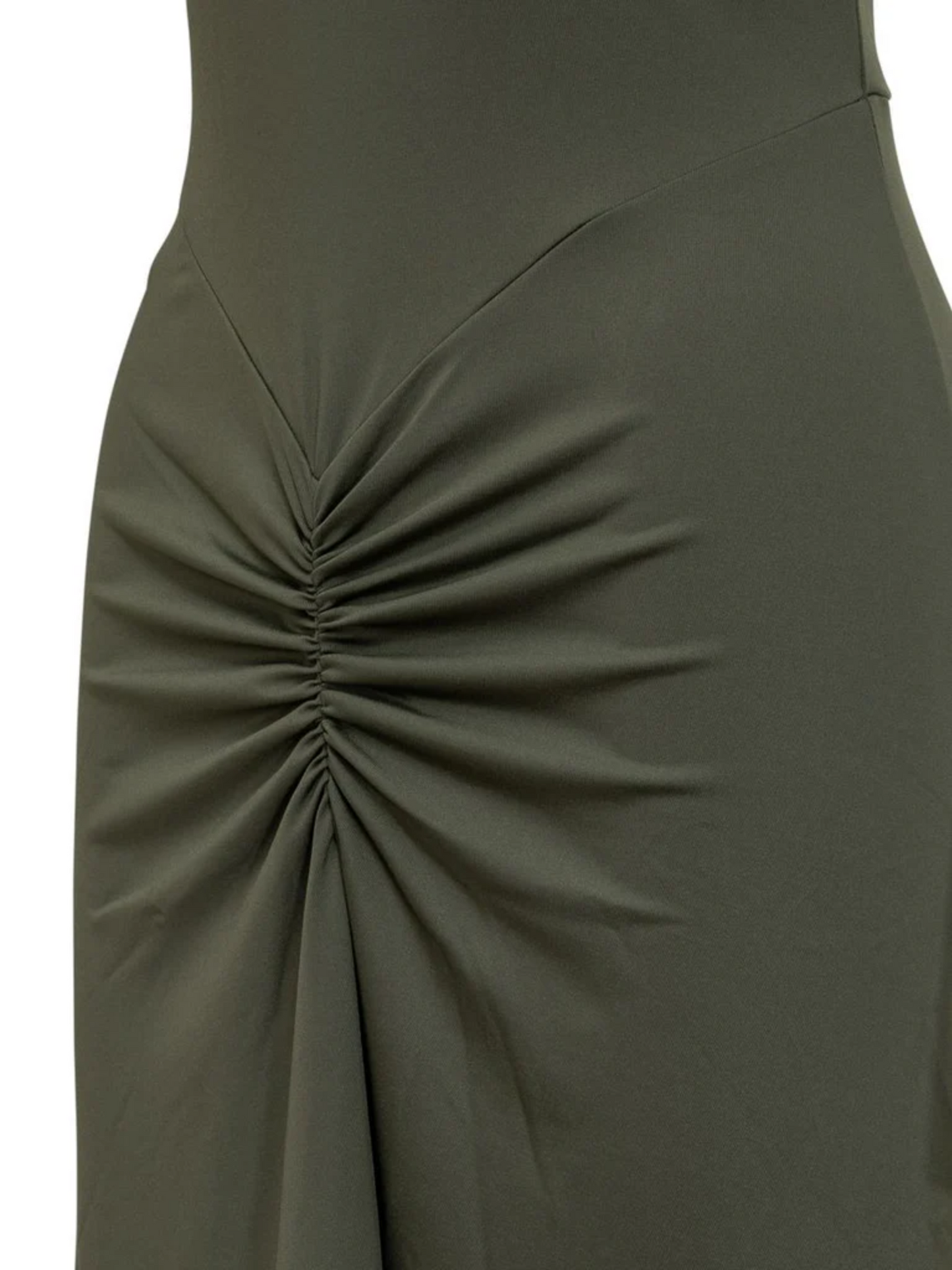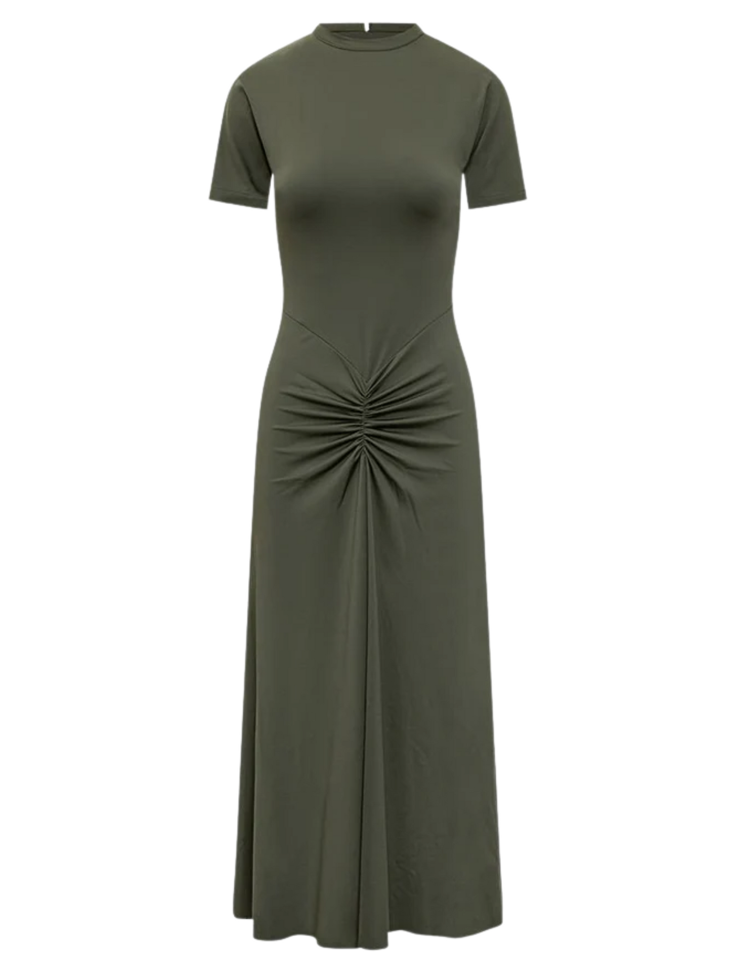 VICTORIA BECKHAM WOMEN Gathered Waist T-Shirt Midi Dress Oregano