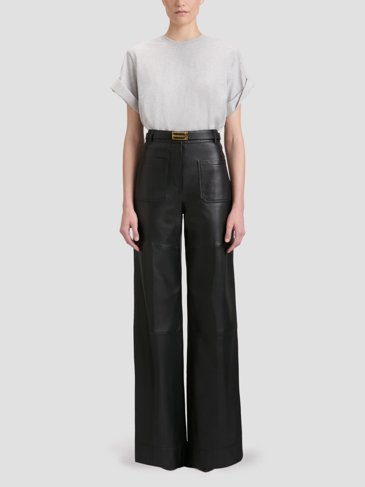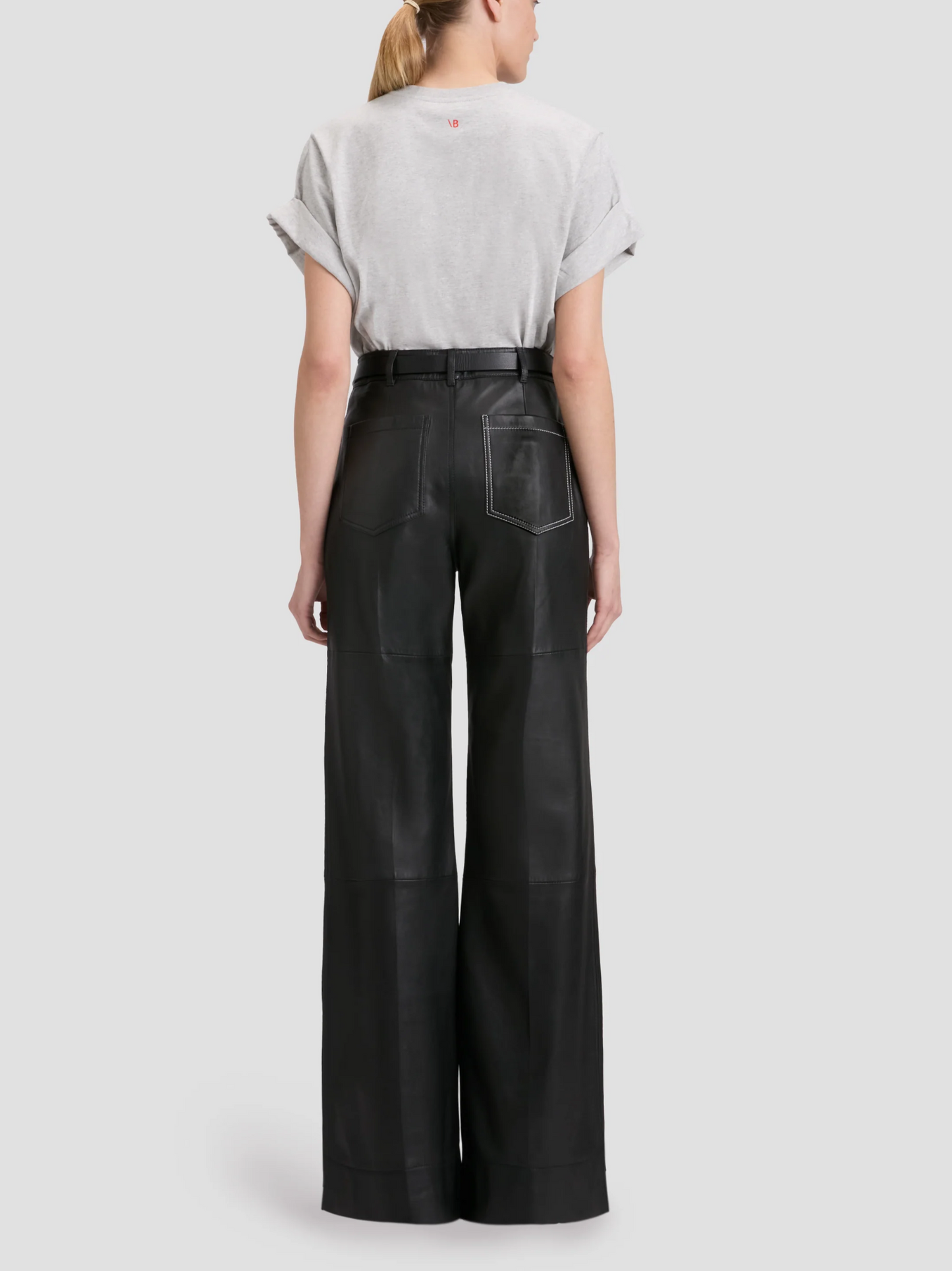 بنطلون فيكتوريا بيكهام ألينا الجلدي للنساء باللون الأسود