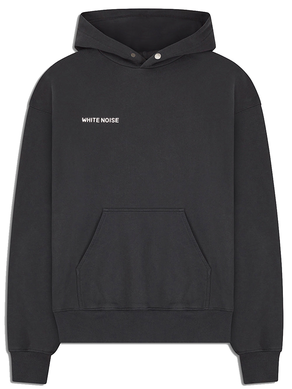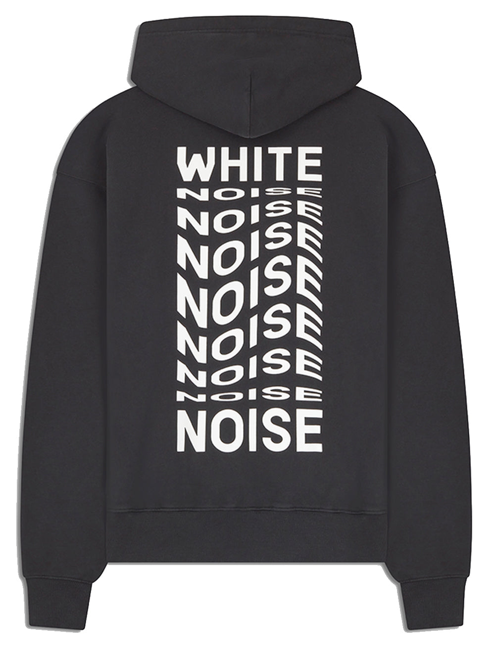 هودي "جرافيك" بشعار الماركة باللون الأسود، مصنوع من قماش جيرسي فاخر بحلقة خلفية، بقصة مريحة. يتميز بشعار WHITE NOISE™ على الصدر وشعار مشوه على الظهر.