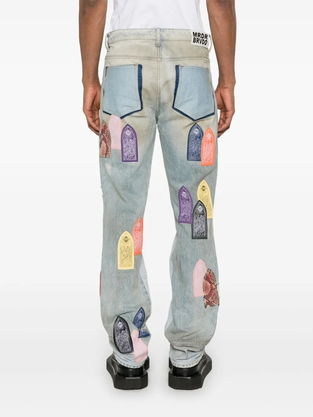 من يقرر الحرب - بنطال جينز ممزق متعدد الألوان برقعة مقوسة ومُصلحة